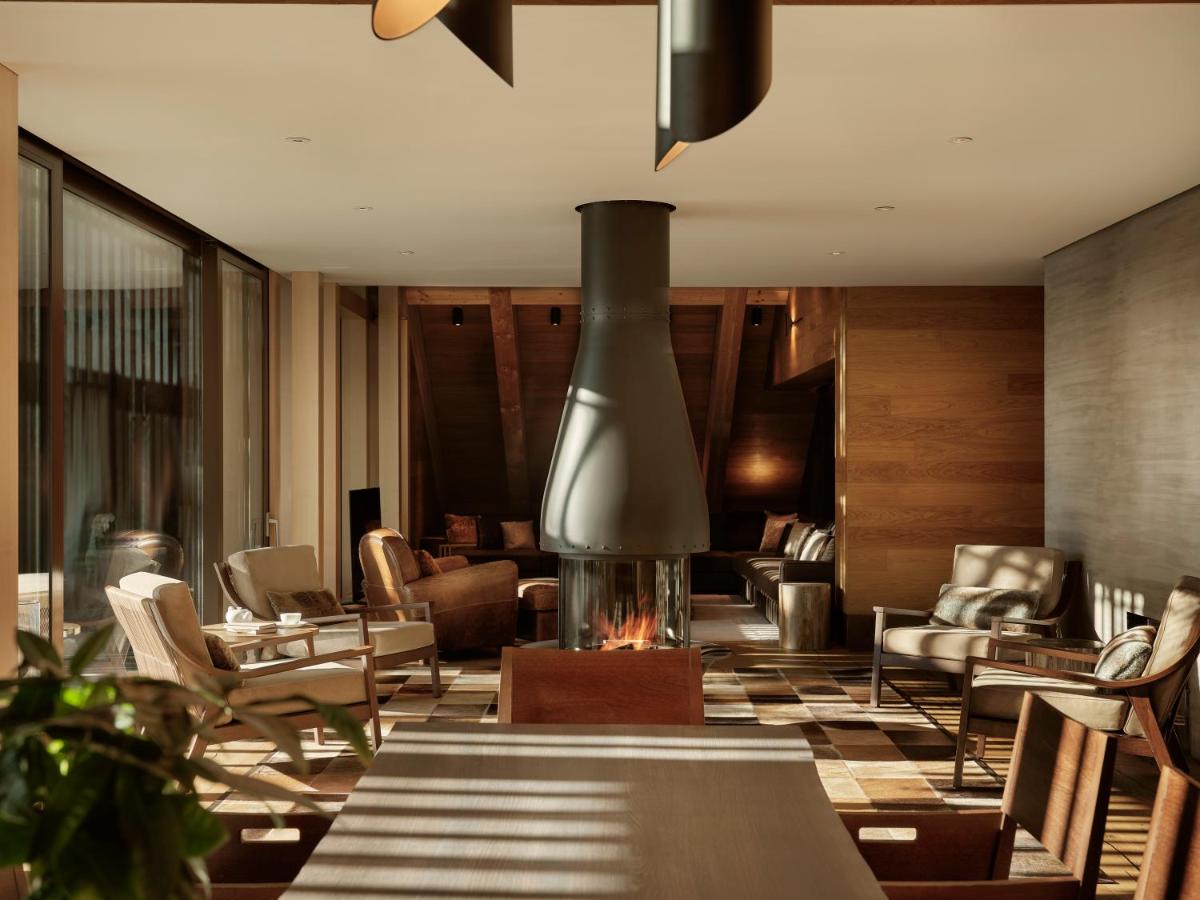The interior architecture is a blend of natural materials, such as dark oak wood and stone, with open fireplaces and expansive spaces. The 123 rooms and suites offer sublime luxury, with consistent details like fireplaces and freestanding bathtubs, ensuring a feeling of warmth and exclusivity.