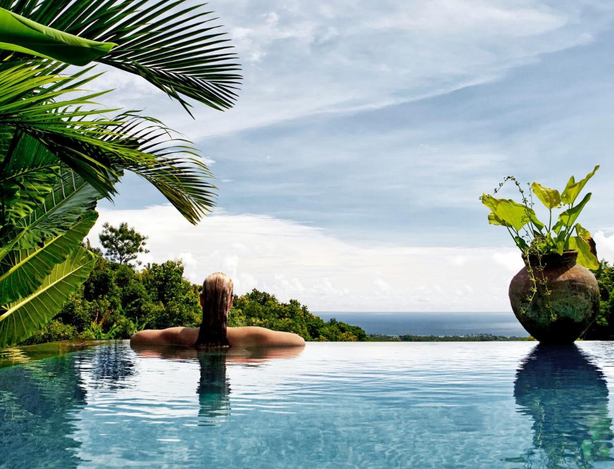 The resort consists of only 14 villas, ensuring a highly personalized experience. The villas are spacious and tastefully decorated, using local antiques and beautiful hardwood furniture, allowing guests to experience graceful tropical living. Many villas boast a private swimming pool, offering a sanctuary of relaxation with an unparalleled view of the sea.