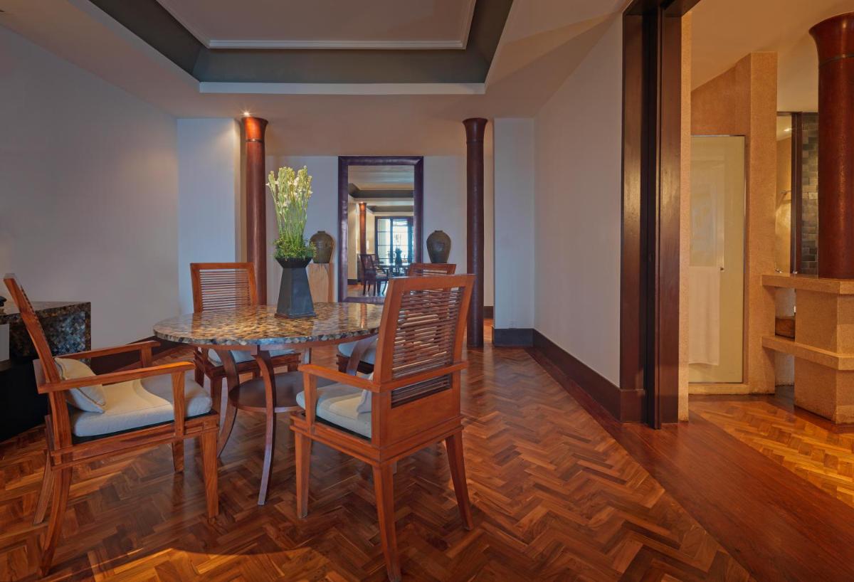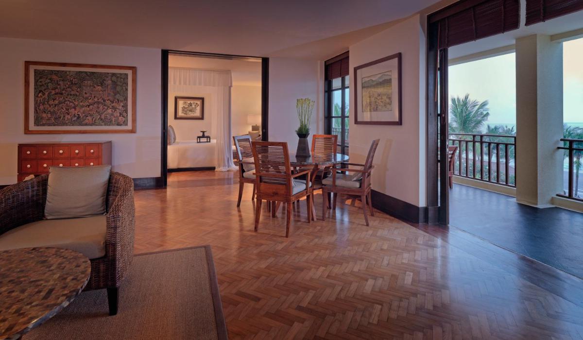 Offering more space, this suite features ample living area, large balcony and a four-seat dining room. The air-conditioned suite is equipped with a flat-screen TV, a personal safe and a coffee machine. Private bathroom includes large bathtub, separate shower and double vanities.