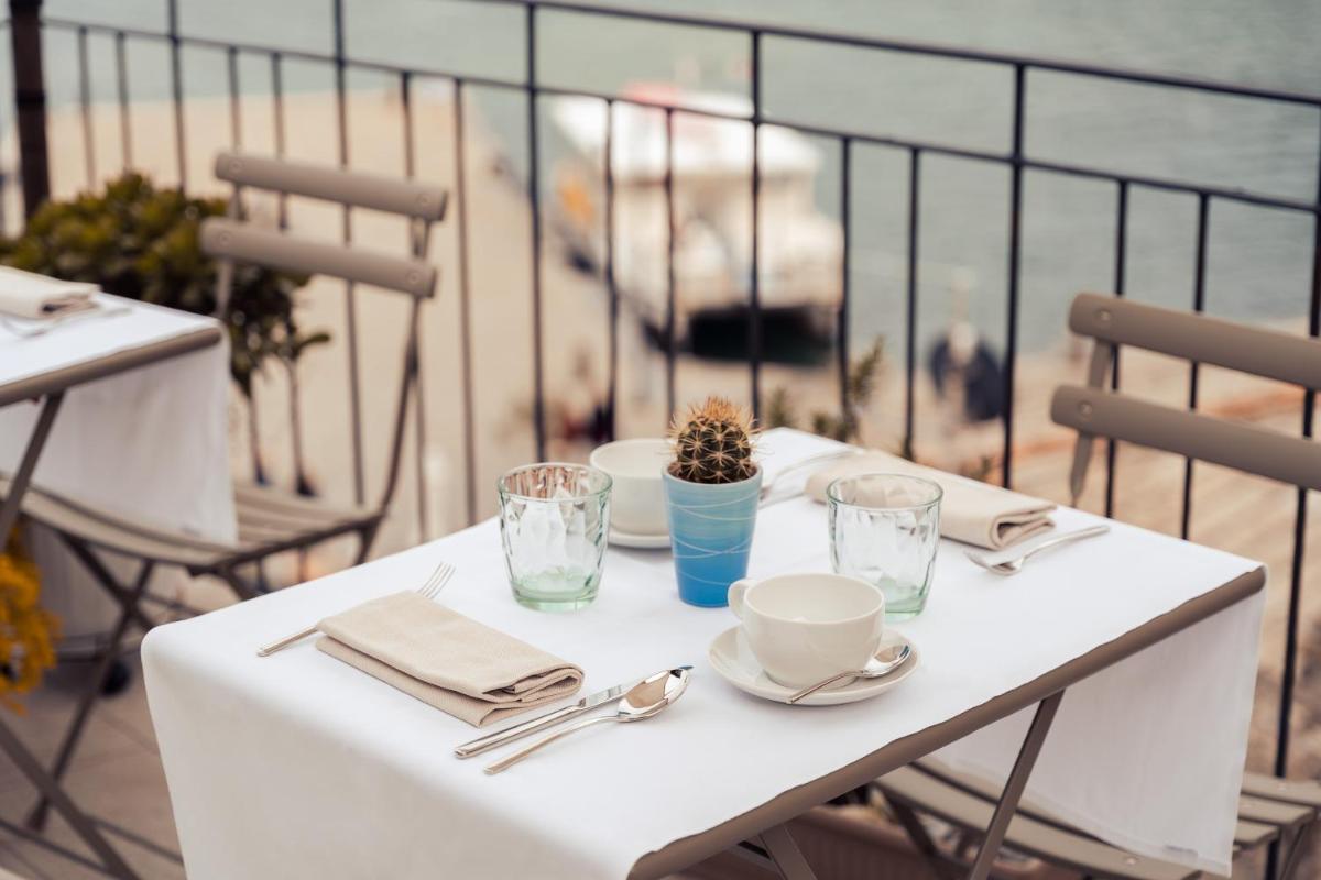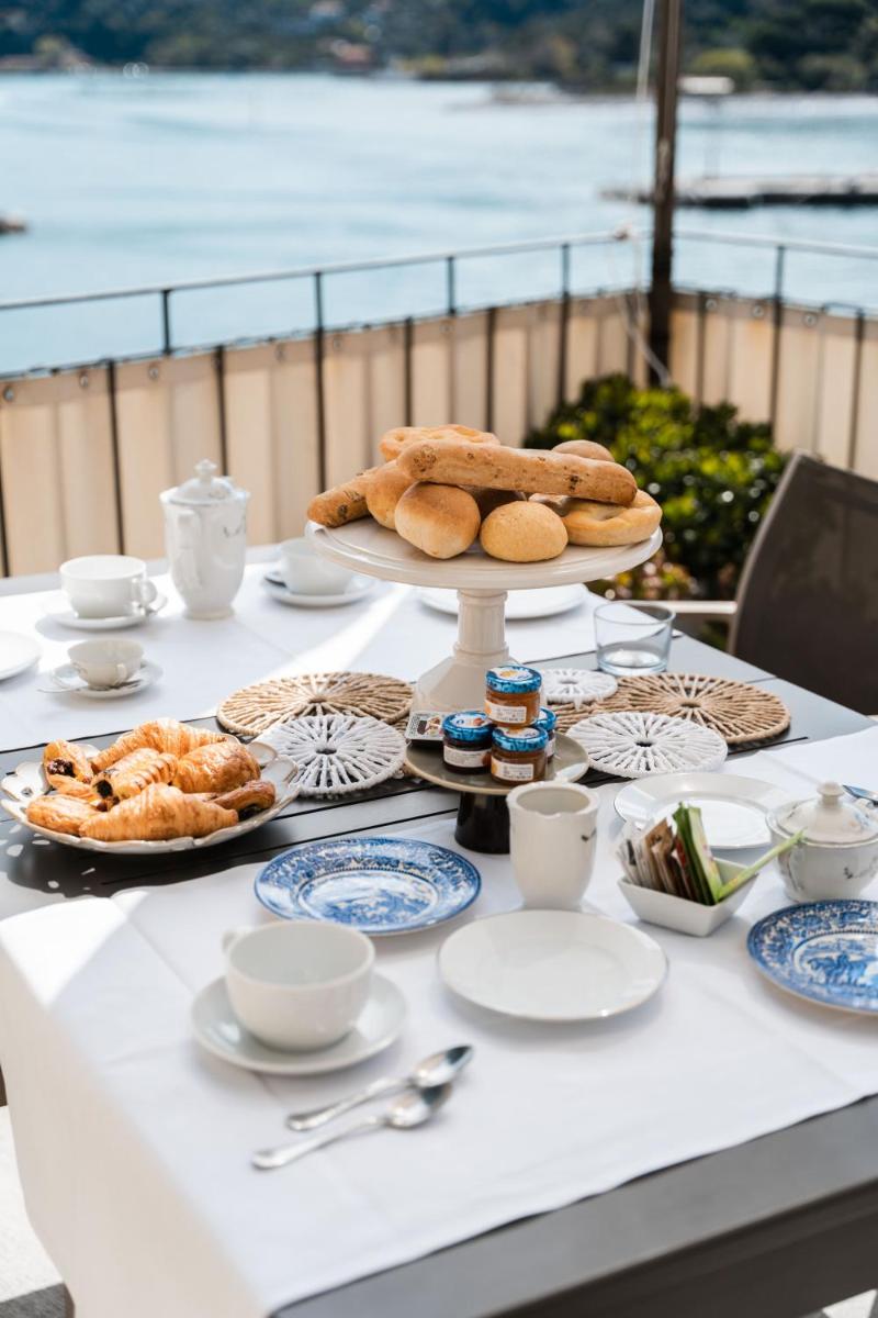 The Palmaria Restaurant is the culinary highlight, noted for its panoramic veranda offering breathtaking views. The restaurant serves innovative Mediterranean and Ligurian Cuisine, based on fresh fish and local specialties, with options for celiac guests. The Venus Bar and its terrace are the ideal spot for a sunset aperitif. The rich buffet breakfast, featuring local and organic products, is served on the panoramic terrace.