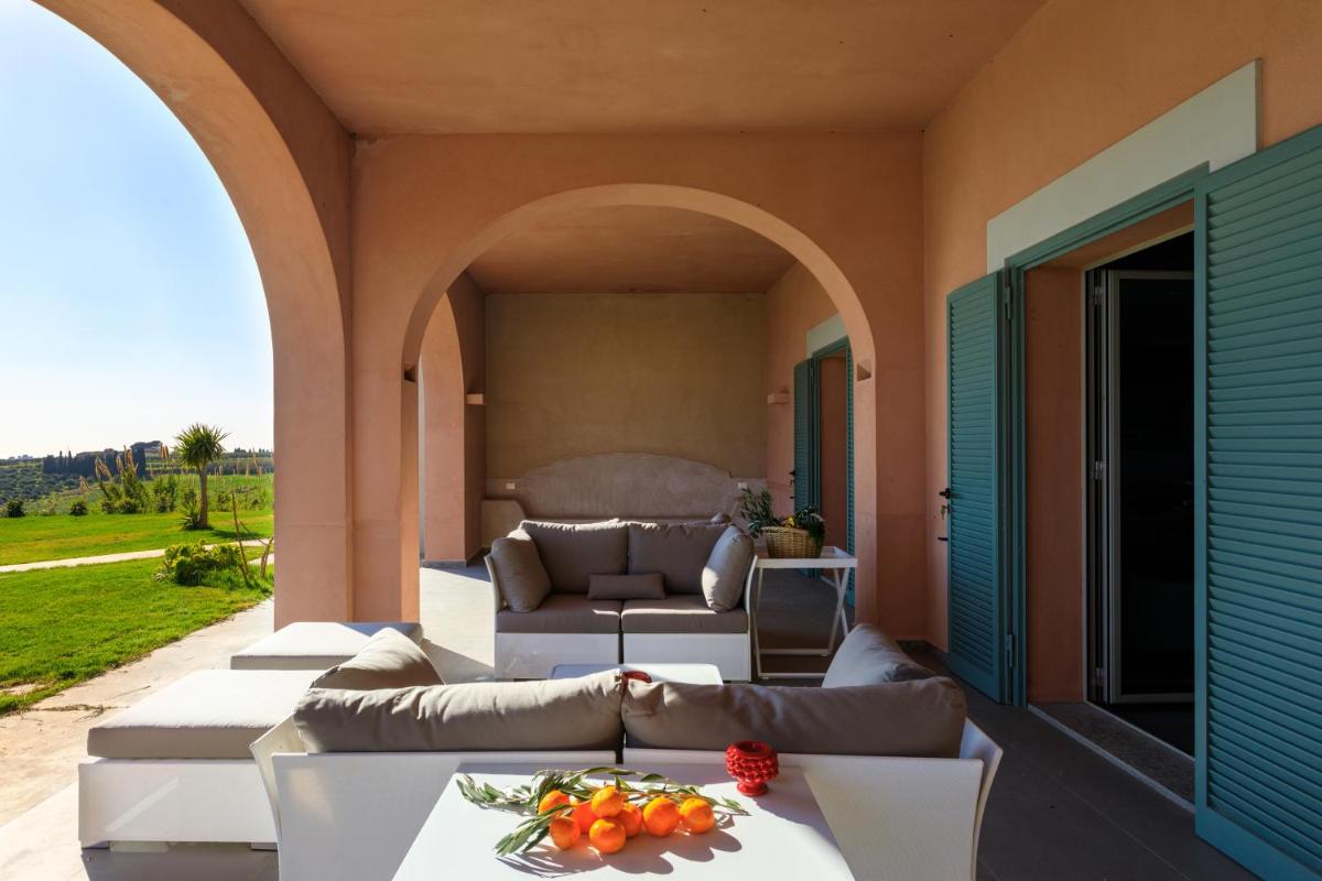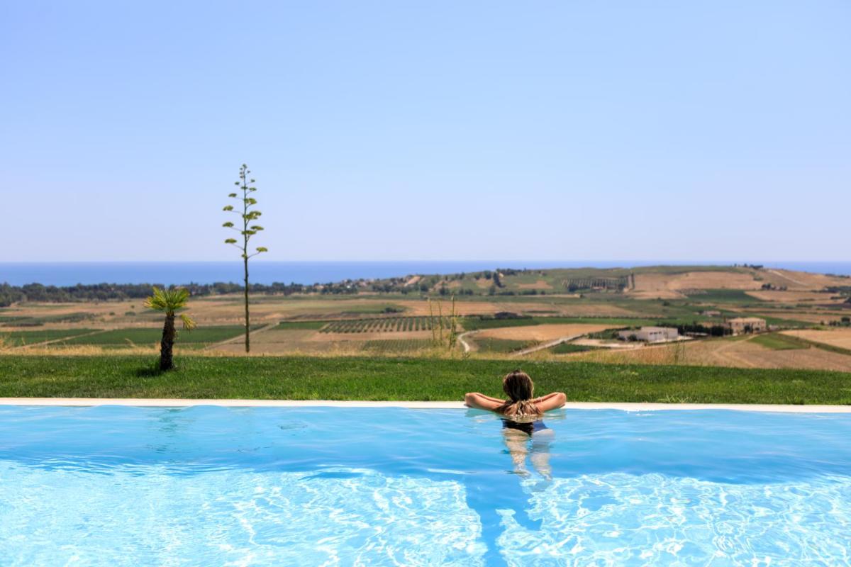 Torre Bonera. Green Resort is an oasis of peace and sustainability, nestled in the gentle hills cultivated with vineyards and olive groves in the territory of Menfi, in the heart of Western Sicily. This resort stands out for its firm adherence to the principles of ecosustainability and respect for the environment, offering a discrete luxury experience that integrates perfectly with the surrounding nature. It is the ideal retreat for lovers of nature, fine wine, and tranquility.