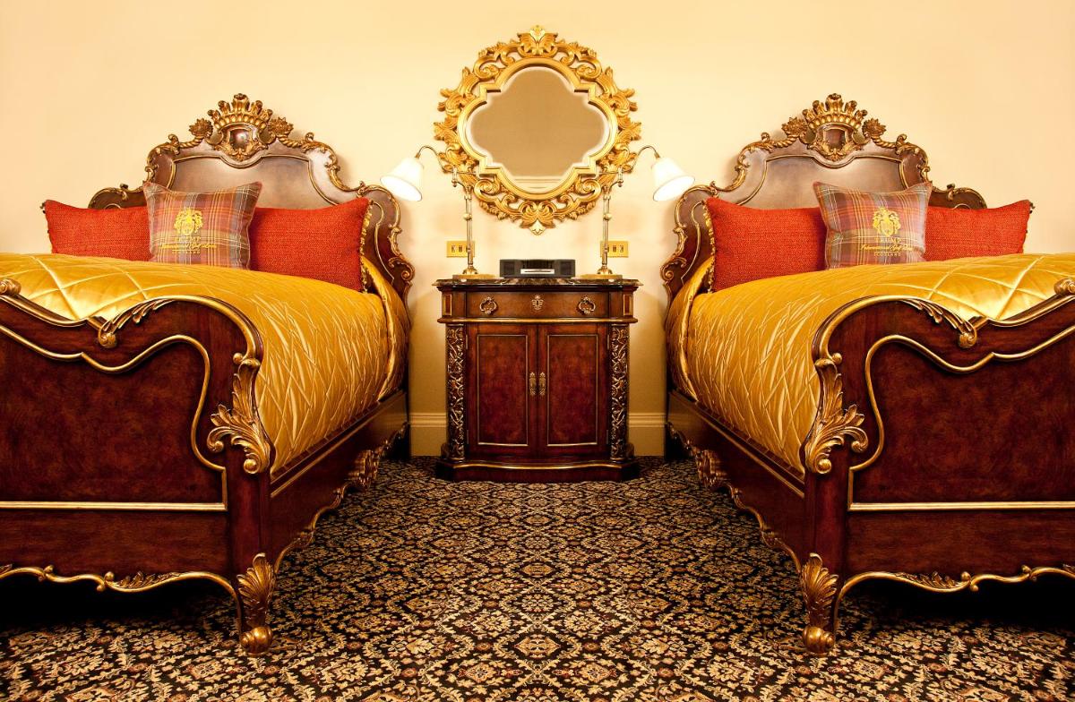 The rooms and suites feature an interior design that balances traditional Scottish elegance with contemporary touches. Each room is unique, with elements like stone fireplaces, four-poster beds, and lavish fabrics, ensuring a regal and intimate stay experience. The bathrooms are luxuriously finished, often featuring marble and deep soaking tubs.