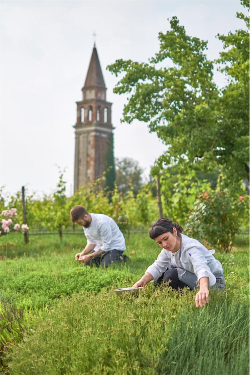 The Michelin starred restaurant at Venissa offers refined dishes based on herbs from the garden lagoon fish and sustainable ingredients. The adjacent Osteria Contemporanea is more informal while maintaining a high level of culinary care.