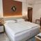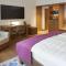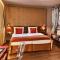 This executive suite features inner courtyard view and is located in the historic wing. It features a separate living and sleeping room, wooden floor, a flat-screen TV, desk, safe. adjustable air conditioning, free WiFi, mini-bar, coffee/tea facilities, choice of pillows, daily newspaper service, and a bathroom with bathtub and shower.