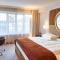 One of the highlights is its spectacular top-floor wellness area, the Rooftop Pool & Spa. It offers a heated pool and a sun terrace with a unique panoramic view over the city's rooftops and the distant Alps, a peaceful retreat above the urban bustle.