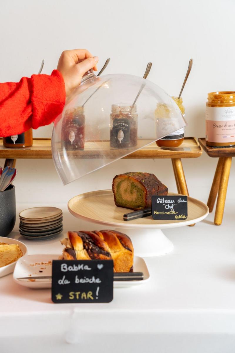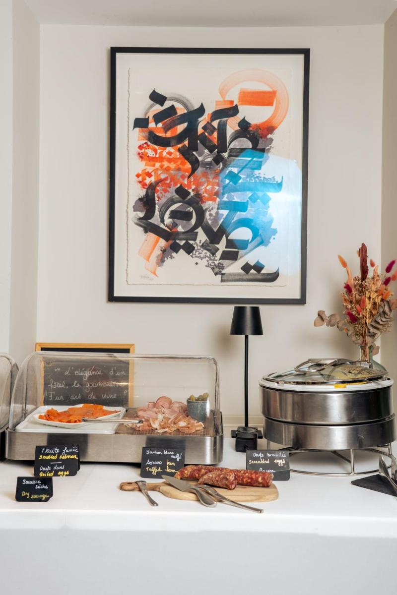 The day begins with a rich and varied gourmet breakfast, which favors fresh and local products from the Occitania region. The selection includes artisan pastries, cheeses, cold cuts, and fresh fruit, served in a welcoming setting that reflects the hotel's refined atmosphere.