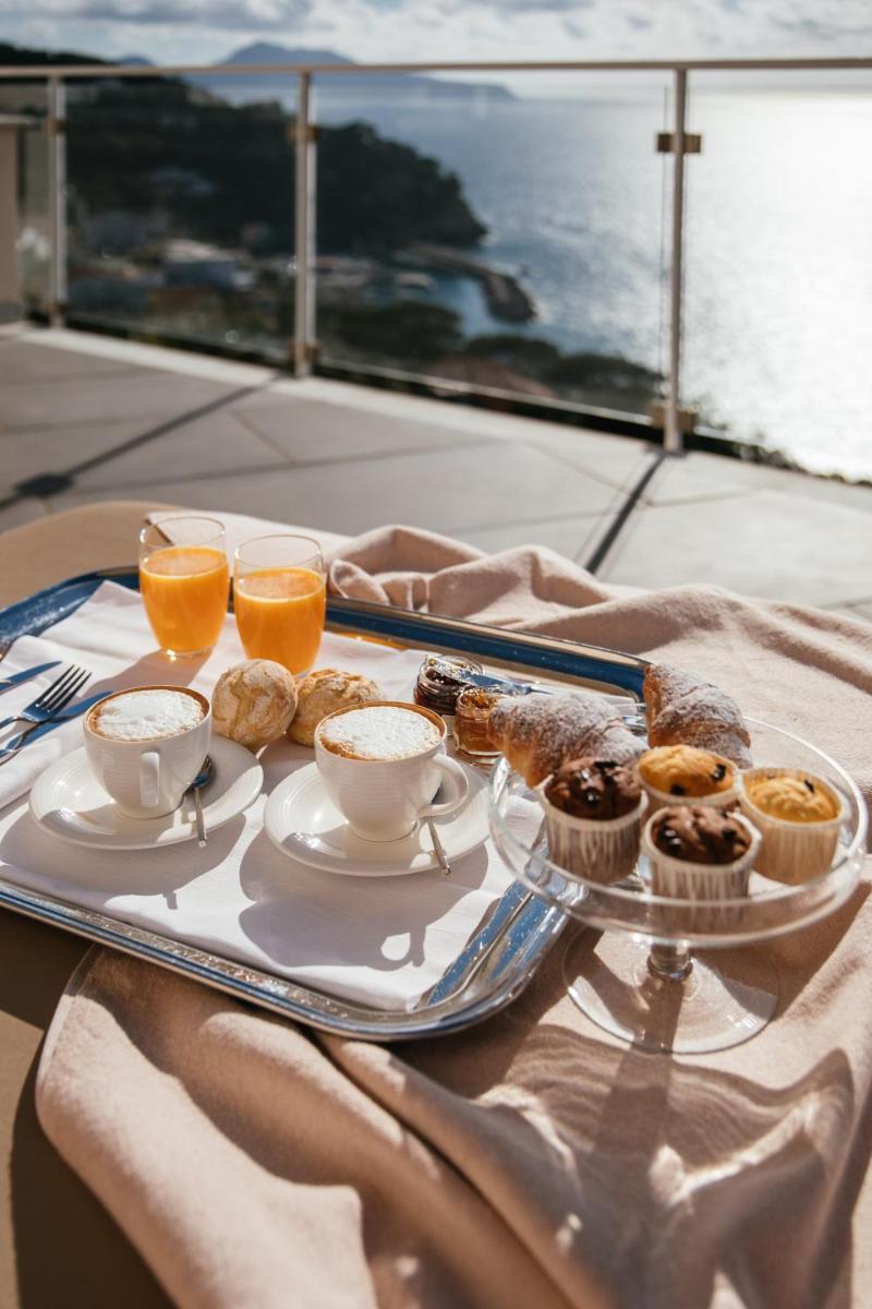 The 23 modern rooms and suites offer contemporary luxury, with light furnishings, Frette linens, and large windows. Nearly all accommodations feature private Balcony or Terrace, with stunning View of the Tyrrhenian Sea/Capri. All are equipped with Air Conditioning, free Wi-Fi, a kettle, and, in higher-category suites, a Hot Tub (Jacuzzi).