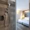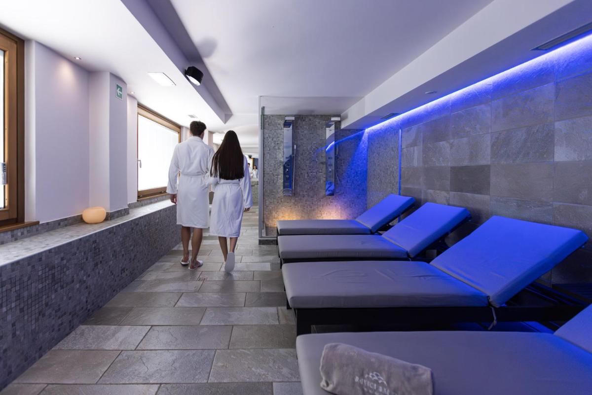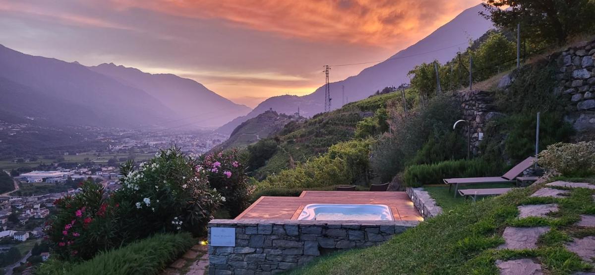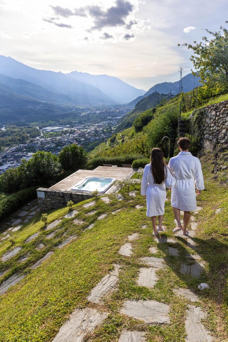 The hotel offers various types of rooms and suites, all furnished in contemporary Alpine style and equipped with large windows or private balconies overlooking the vineyards. The accommodations feature all modern comforts, including satellite TV, mini-bar, safe, and free WiFi. The culinary heart of the structure is its gastronomic offer: the hotel boasts the famous traditional restaurant Crotto di Poggiridenti, located on the property, which offers traditional Valtellina cuisine with local raw ingredients and an exceptional wine list, with an emphasis on local DOC and DOCG reds.