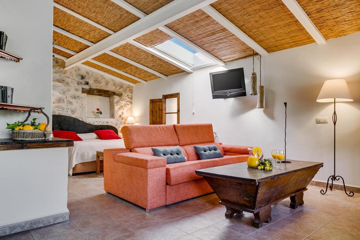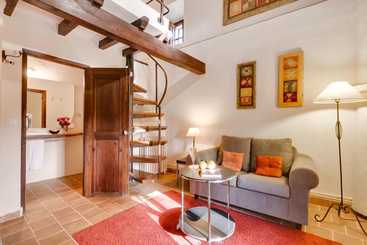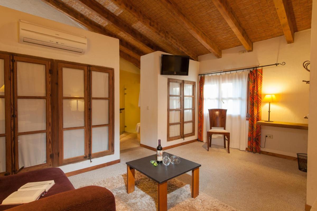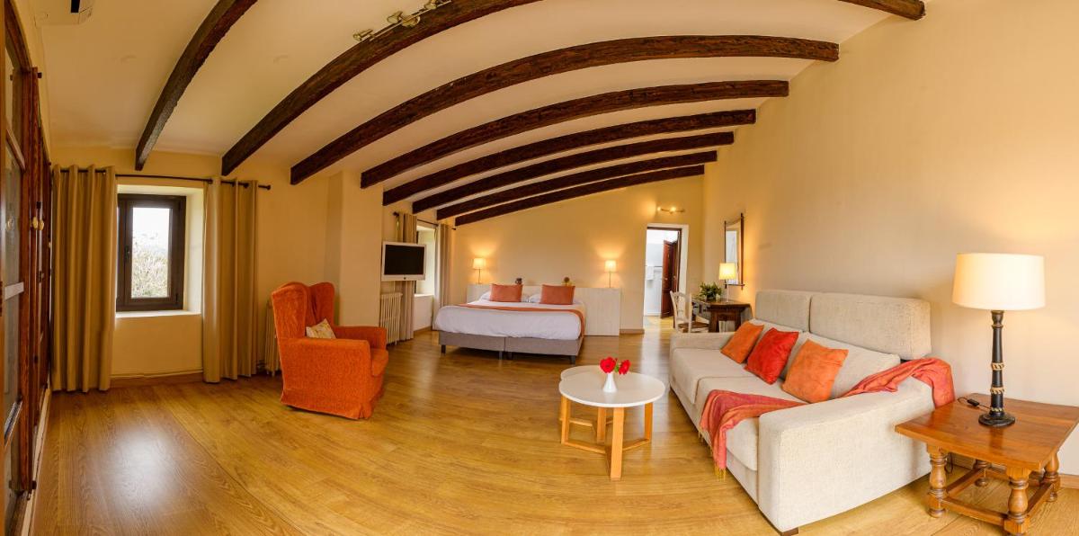 La finca ha sido restaurada manteniendo intactos los elementos arquitectónicos originales, como los arcos de piedra, los muros gruesos y las vigas de madera a la vista. La decoración es una mezcla de muebles antiguos y comodidades modernas, creando un ambiente de lujo rústico y acogedor que cuenta la historia de la propiedad y la región.