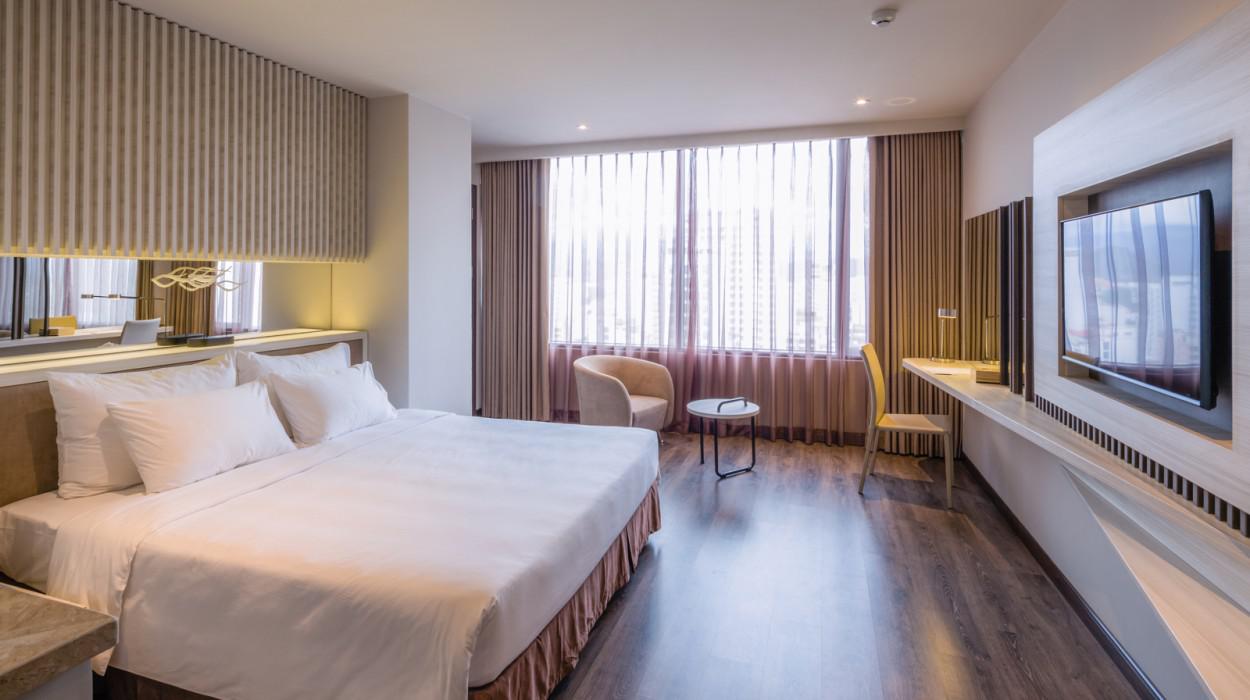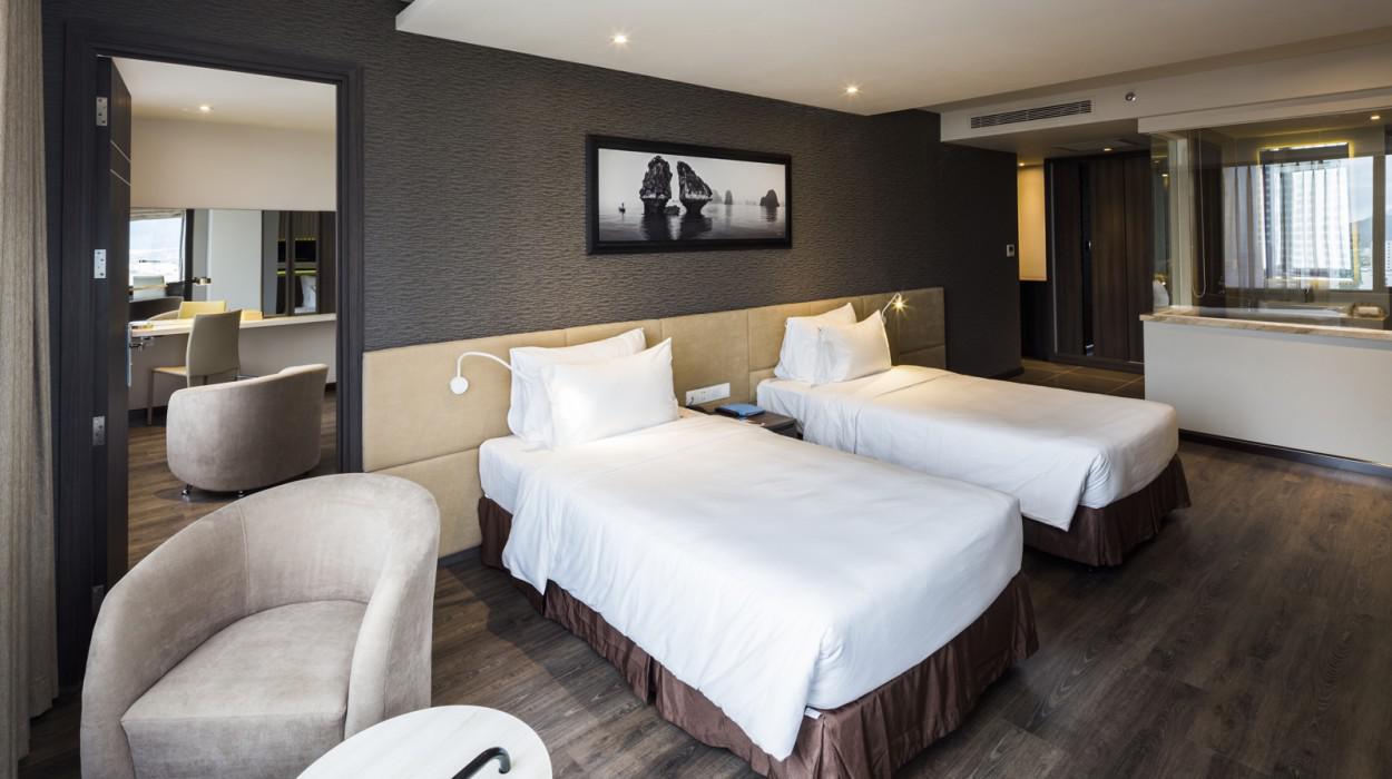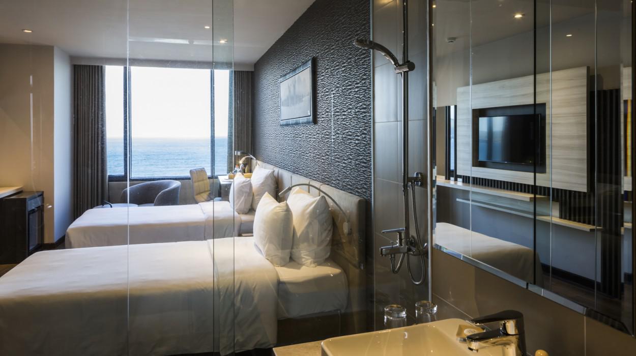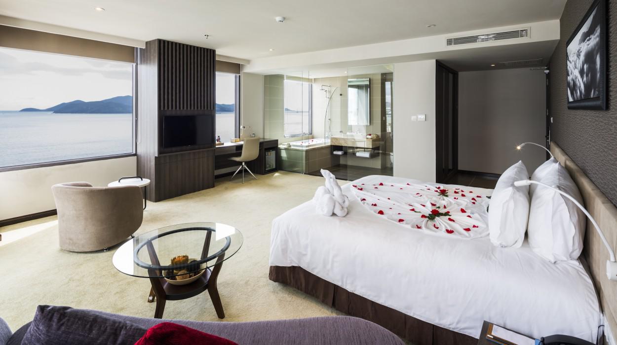 Las habitaciones y suites están diseñadas con un estilo contemporáneo, luminoso y limpio. Muchas ofrecen balcones privados con una espectacular vista al océano y la bahía, permitiendo a los huéspedes despertarse admirando el amanecer sobre el Mar de China Meridional y disfrutar de la brisa marina en todo momento.