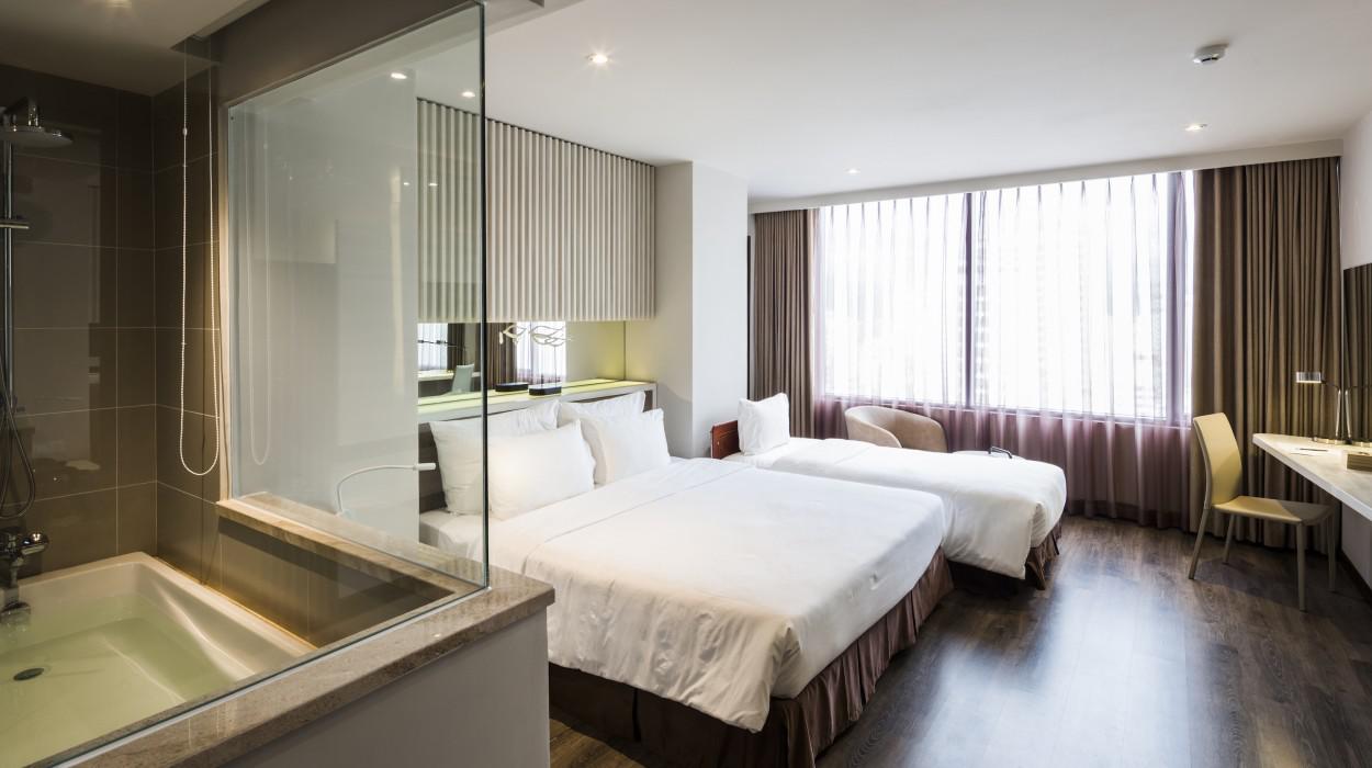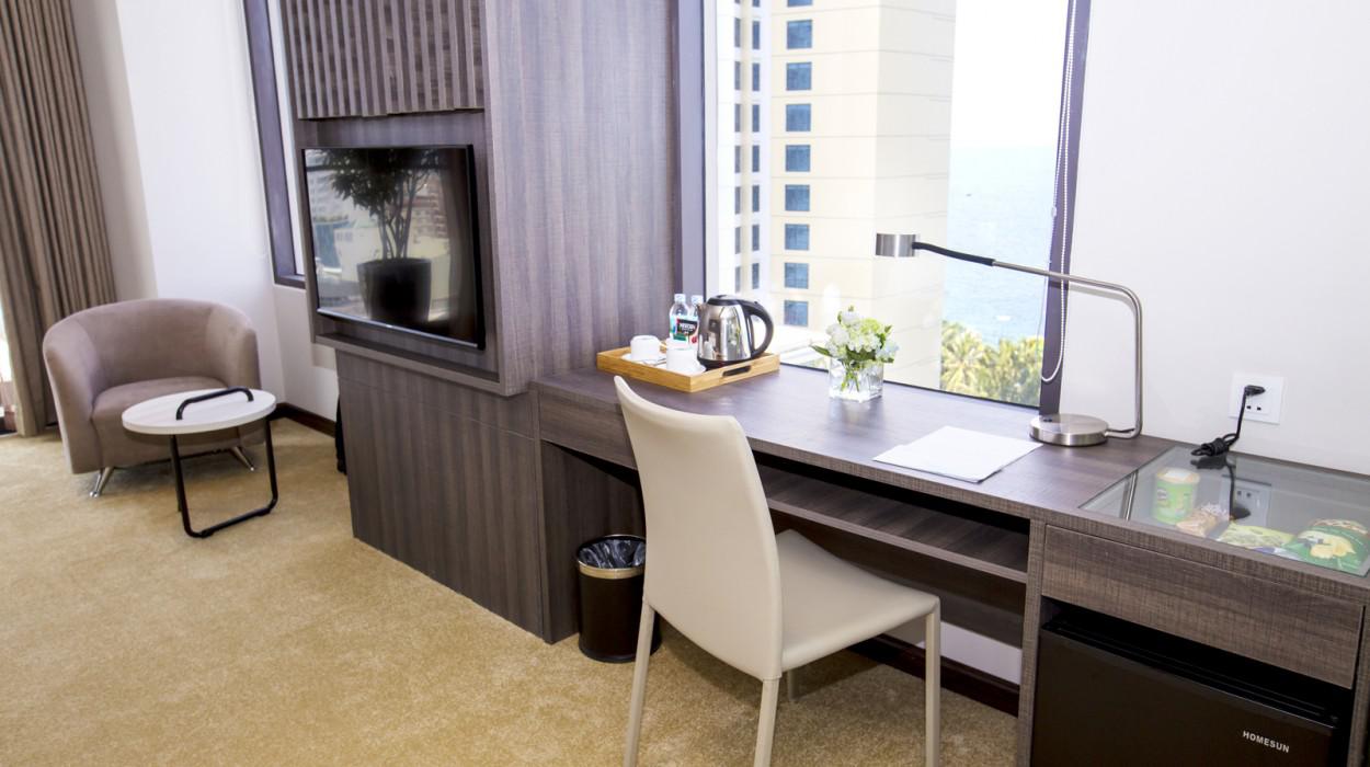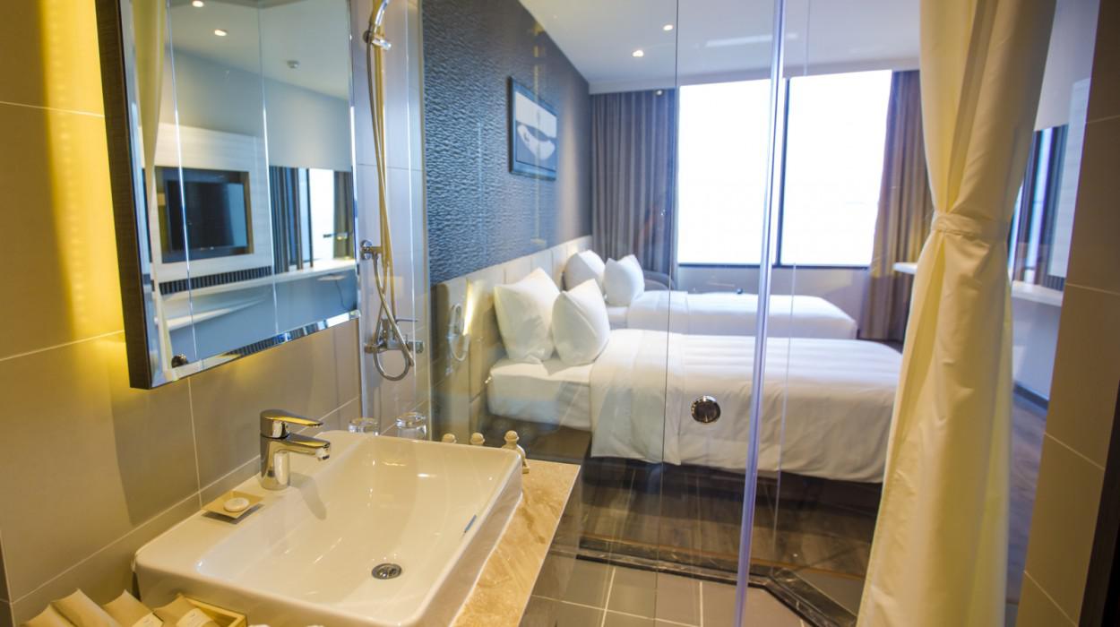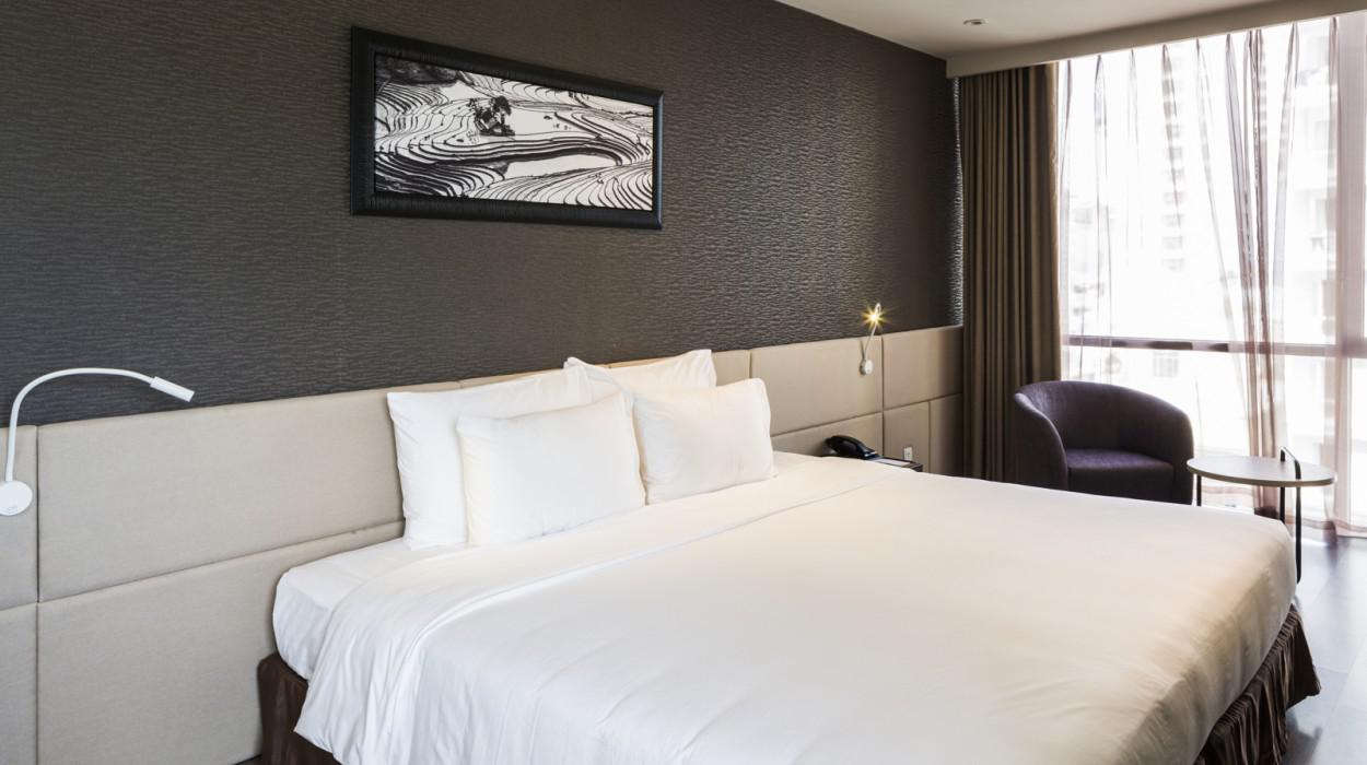 Las habitaciones y suites están diseñadas con un estilo contemporáneo, luminoso y limpio. Muchas ofrecen balcones privados con una espectacular vista al océano y la bahía, permitiendo a los huéspedes despertarse admirando el amanecer sobre el Mar de China Meridional y disfrutar de la brisa marina en todo momento.