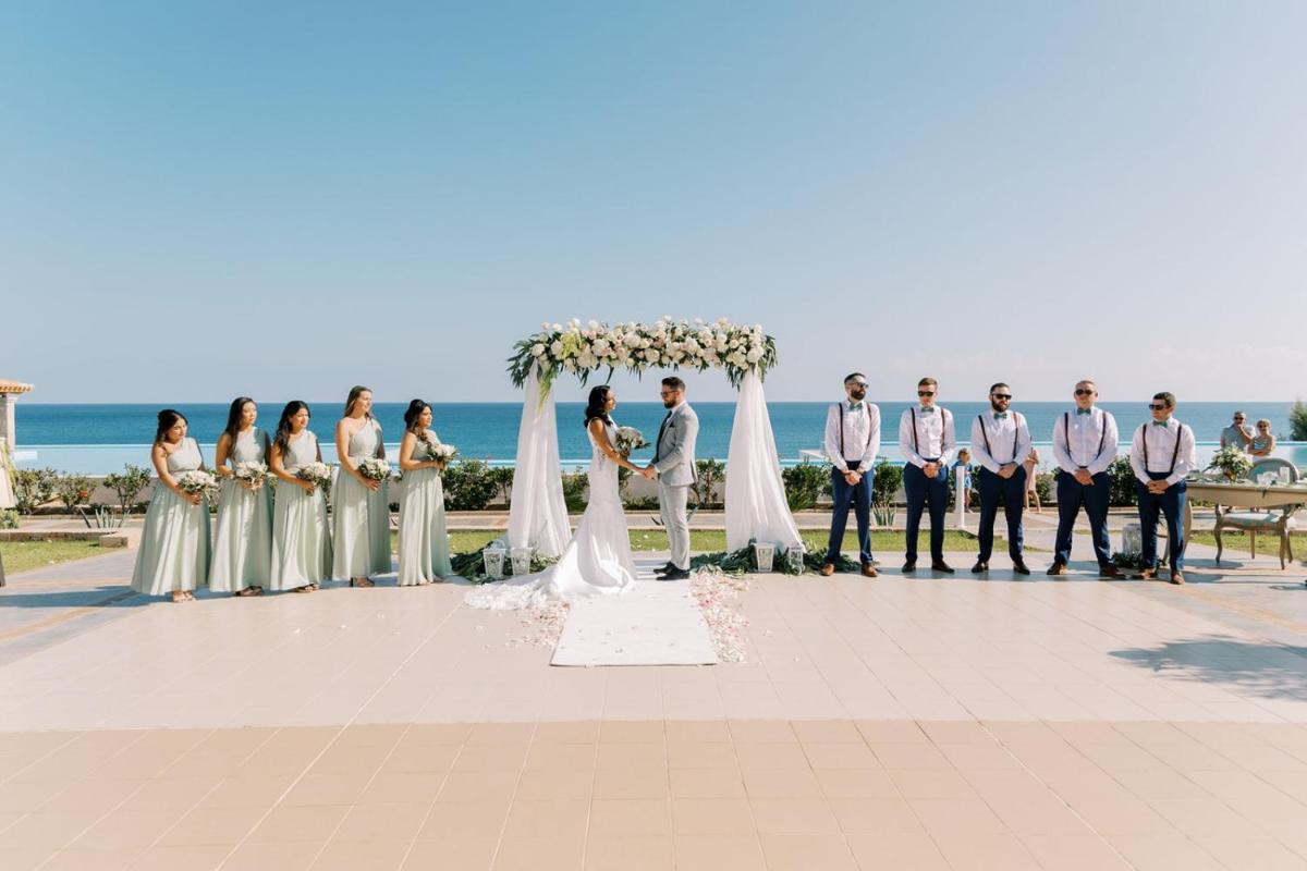 El resort cuenta con una amplia gama de alojamientos de lujo, desde elegantes suites hasta villas privadas, muchas de las cuales ofrecen una piscina privada infinita o un jacuzzi estratégicamente posicionados para disfrutar de la vista al mar. Los interiores son espaciosos, con mobiliario de alta gama y un diseño que evoca la serenidad del Egeo, asegurando máxima privacidad y confort absoluto.