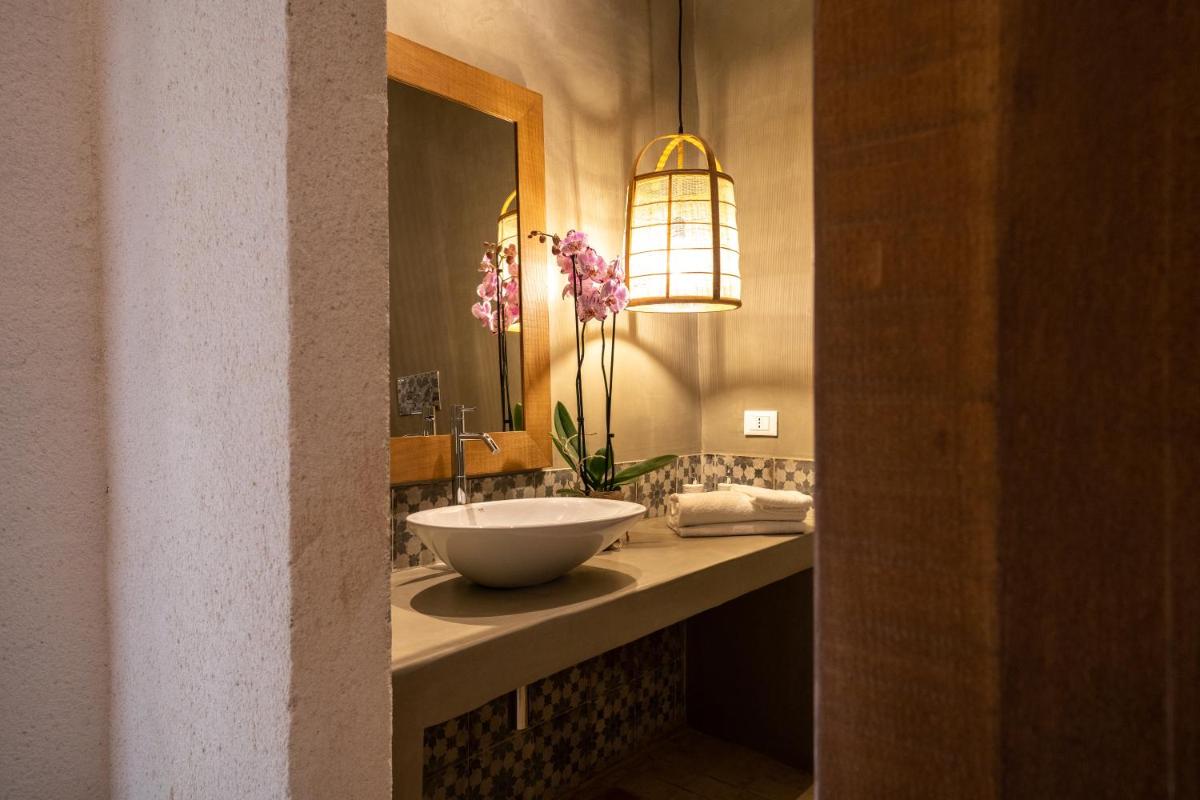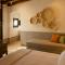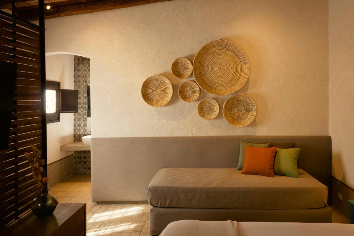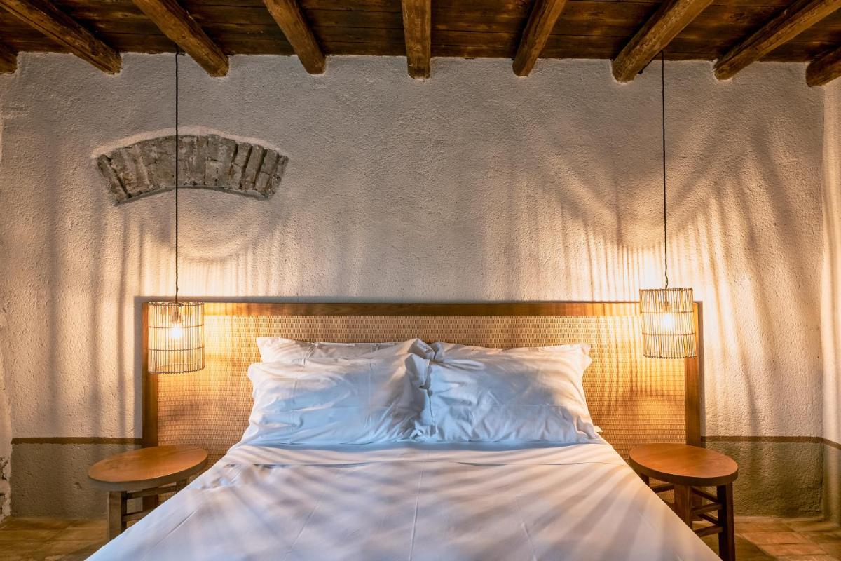 El hotel cuenta con únicamente ocho habitaciones, cada una con terraza o patio privado. Espacios amplios, suelos de terracota, camas de madera natural y decoración minimalista crean una atmósfera tranquila y personal.