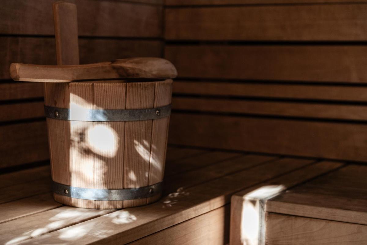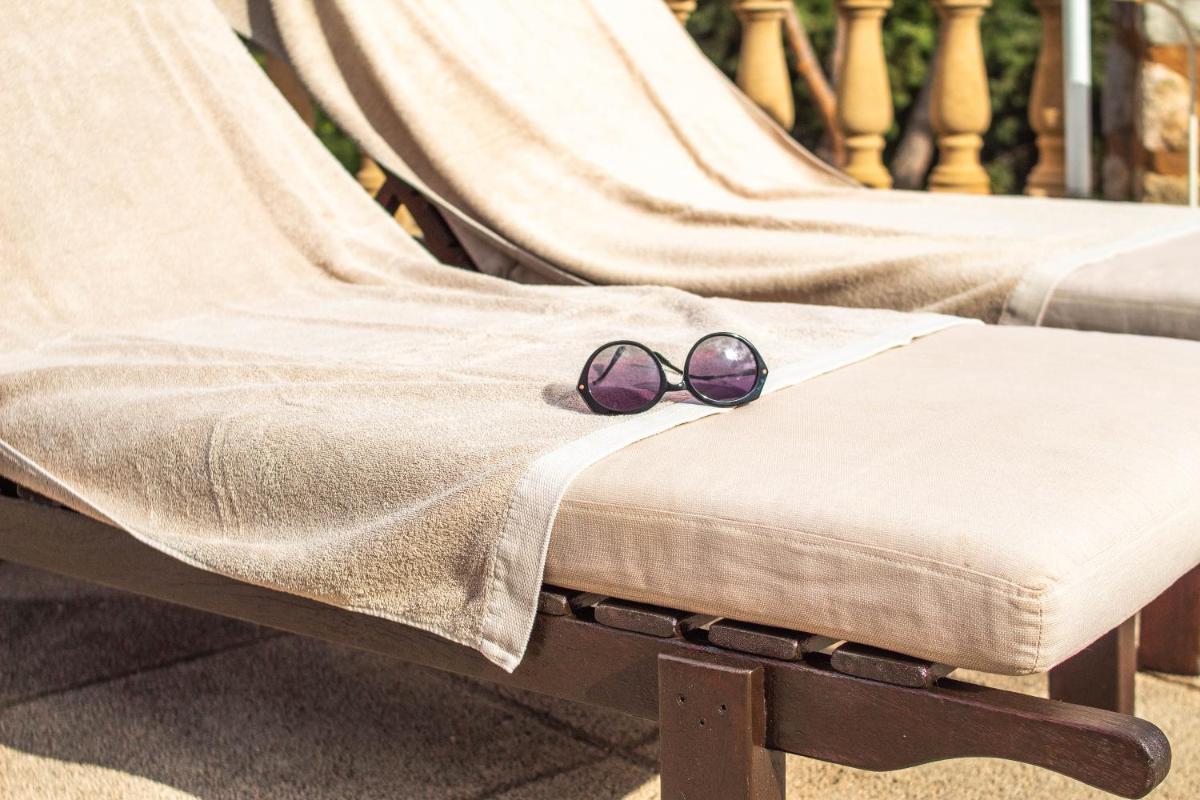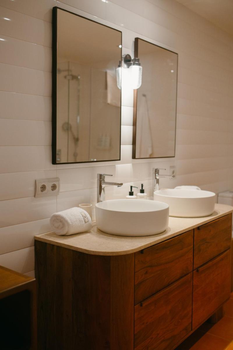 La zona wellness incluye piscina exterior climatizada, jacuzzi, sauna y espacios para yoga y meditación al aire libre.