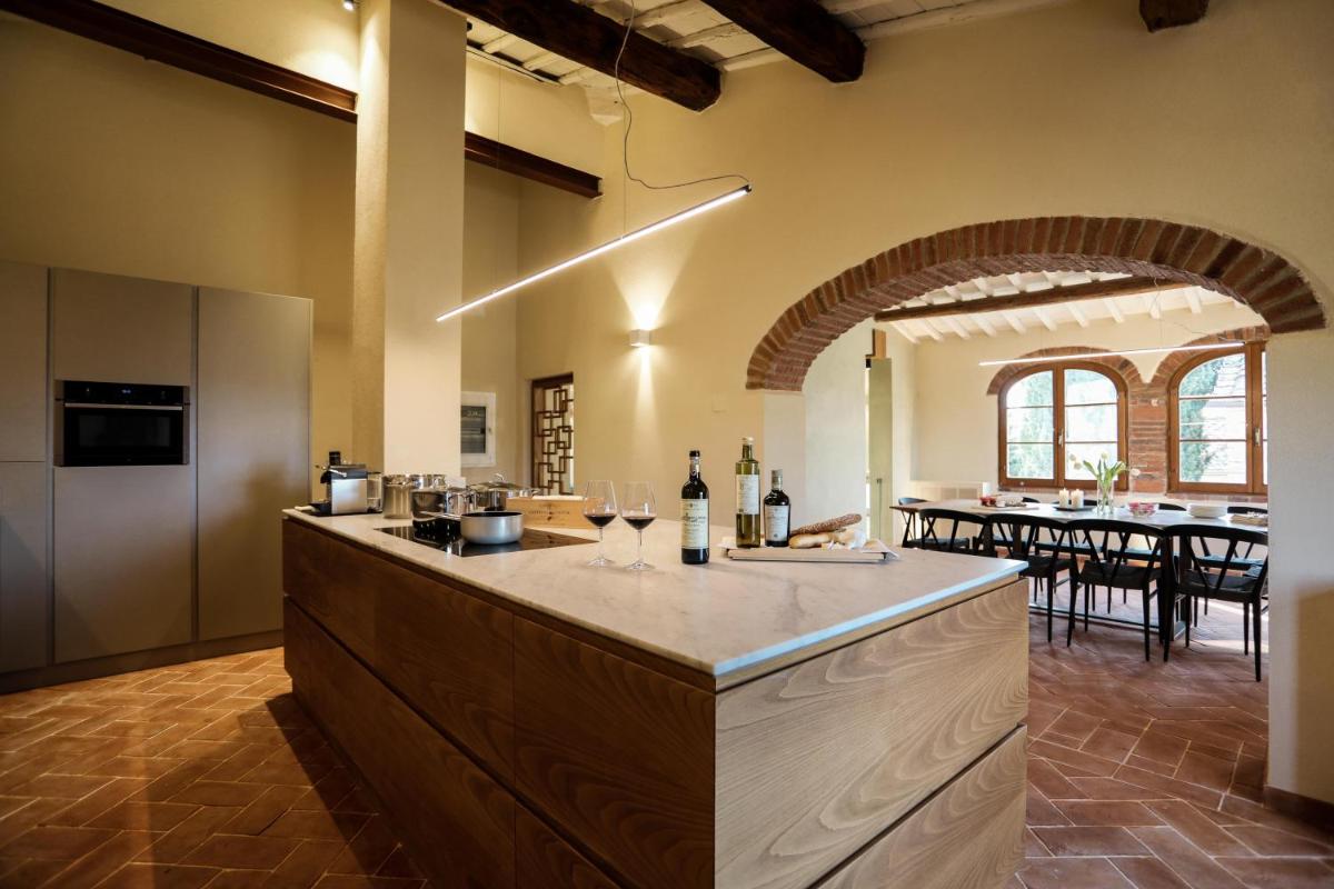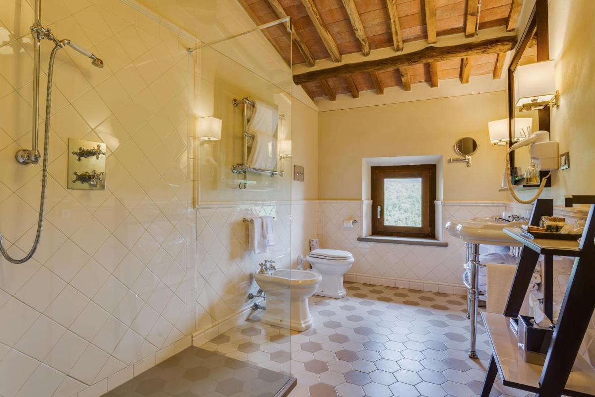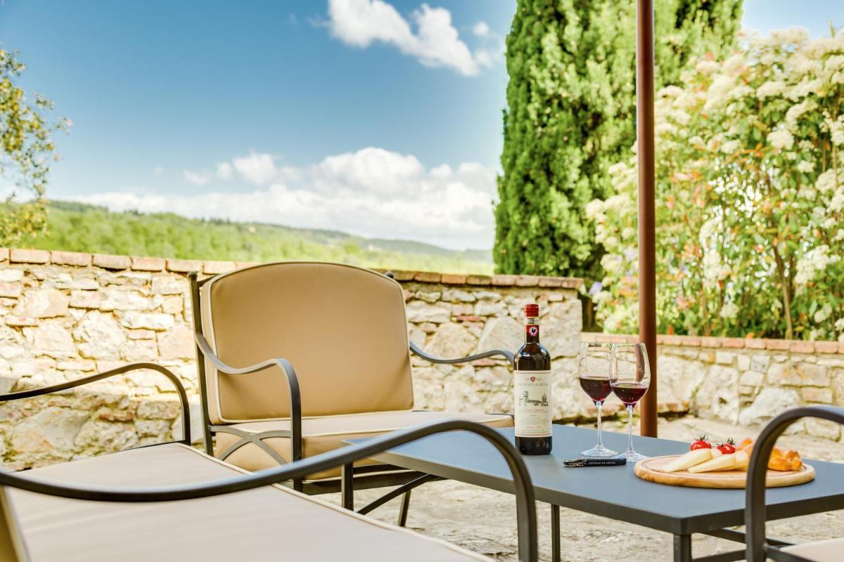 La granja ecológica del Castillo produce un excelente Chianti Classico DOCG y un magnífico Aceite de Oliva Virgen Extra DOP. Se invita a los huéspedes a participar en Visitas guiadas a la Bodega y Catas de vinos y aceite. El Restaurante del hotel ofrece una refinada Cocina Toscana basada en la filosofía del "Kilómetro Cero", utilizando ingredientes frescos, de temporada y de origen local, muchos producidos en la finca. El desayuno está incluido y se sirve con especialidades locales, mientras que la cena y los almuerzos ligeros están disponibles con el mismo compromiso con la calidad.