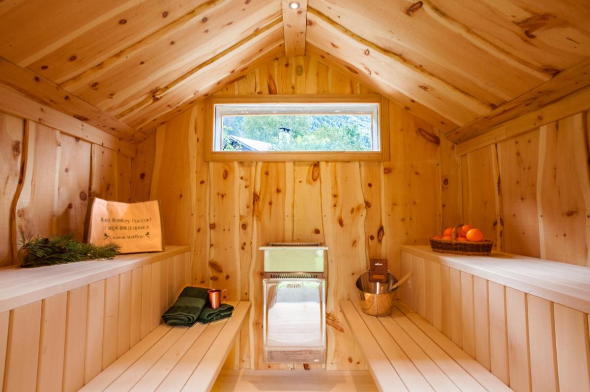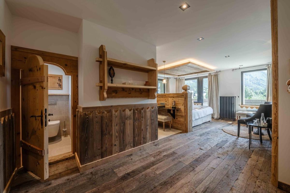 El diseño es tradicional y cálido, con un amplio uso de madera y mobiliario que crea una sensación de 'hogar en la montaña'. Muchas habitaciones cuentan con balcones que ofrecen una vista privilegiada y directa de la Aiguille du Midi y el Mont Blanc. Es un lugar donde el confort rústico se encuentra con la serenidad de los Alpes.