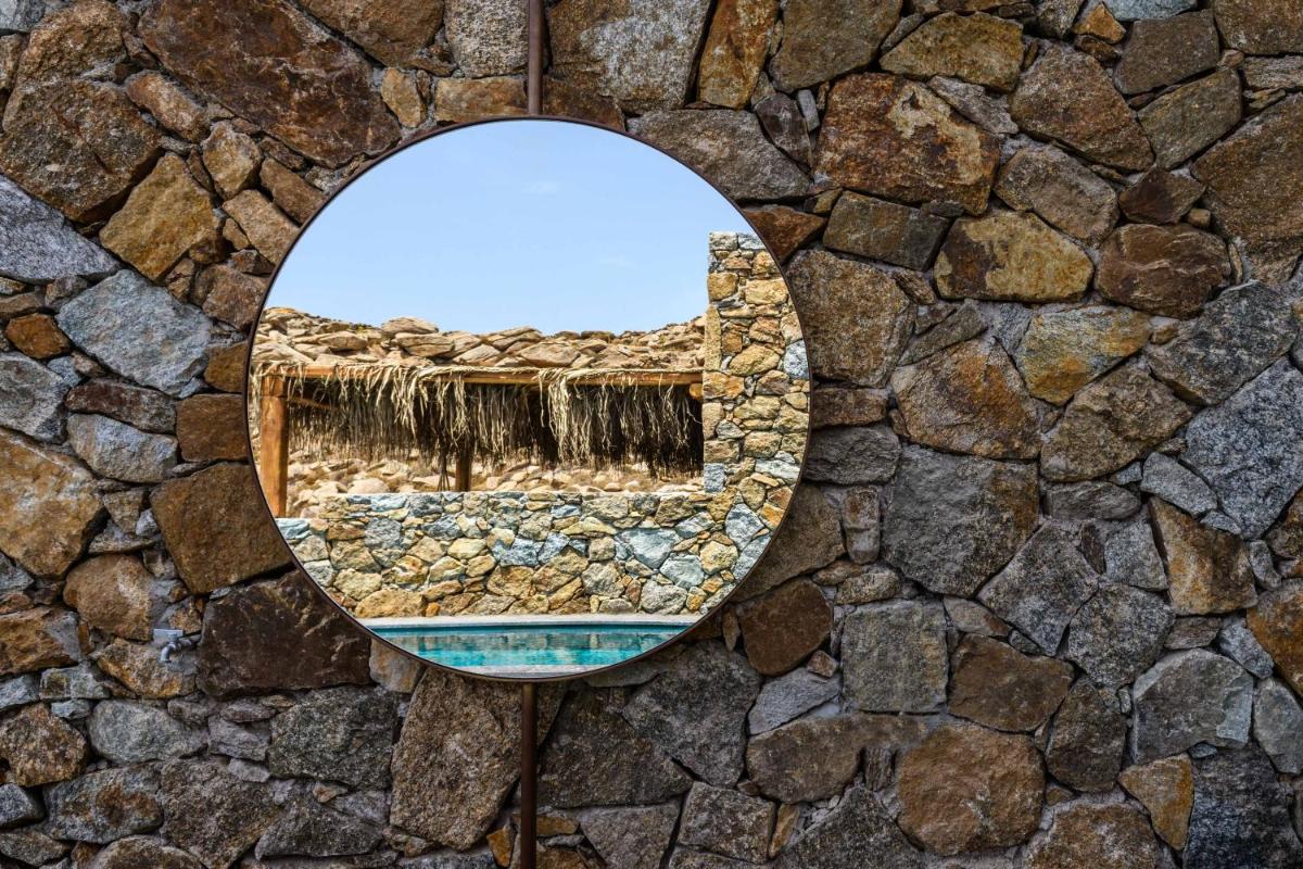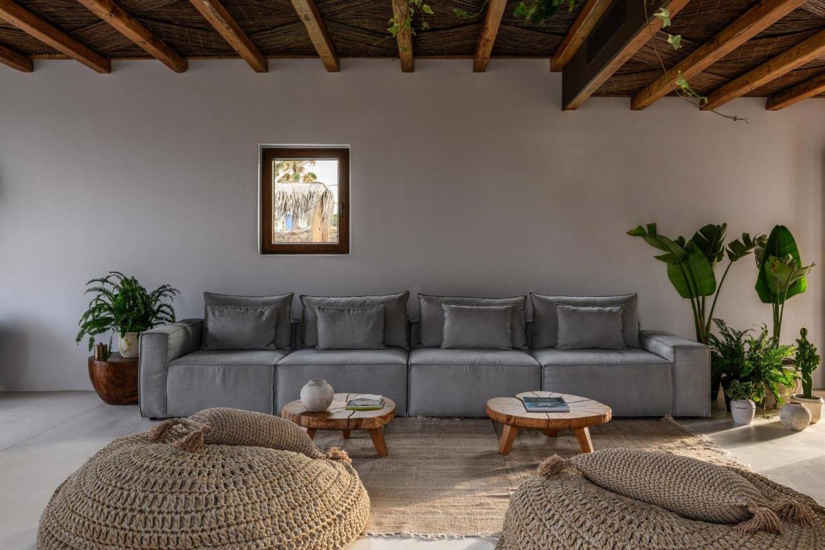 El Charisma Hotel and Wellness Club es un elegante hotel boutique situado en una ubicación tranquila, pero estratégicamente cercana a la vibrante Ciudad de Mykonos (Chora). Este resort se posiciona como un oasis de paz, enfocado en el bienestar y la relajación, mientras mantiene el estilo y el glamour típicos de la isla. El diseño es una mezcla refinada de arquitectura ciclática y toques bohemio-chic, creando una atmósfera acogedora y sofisticada.