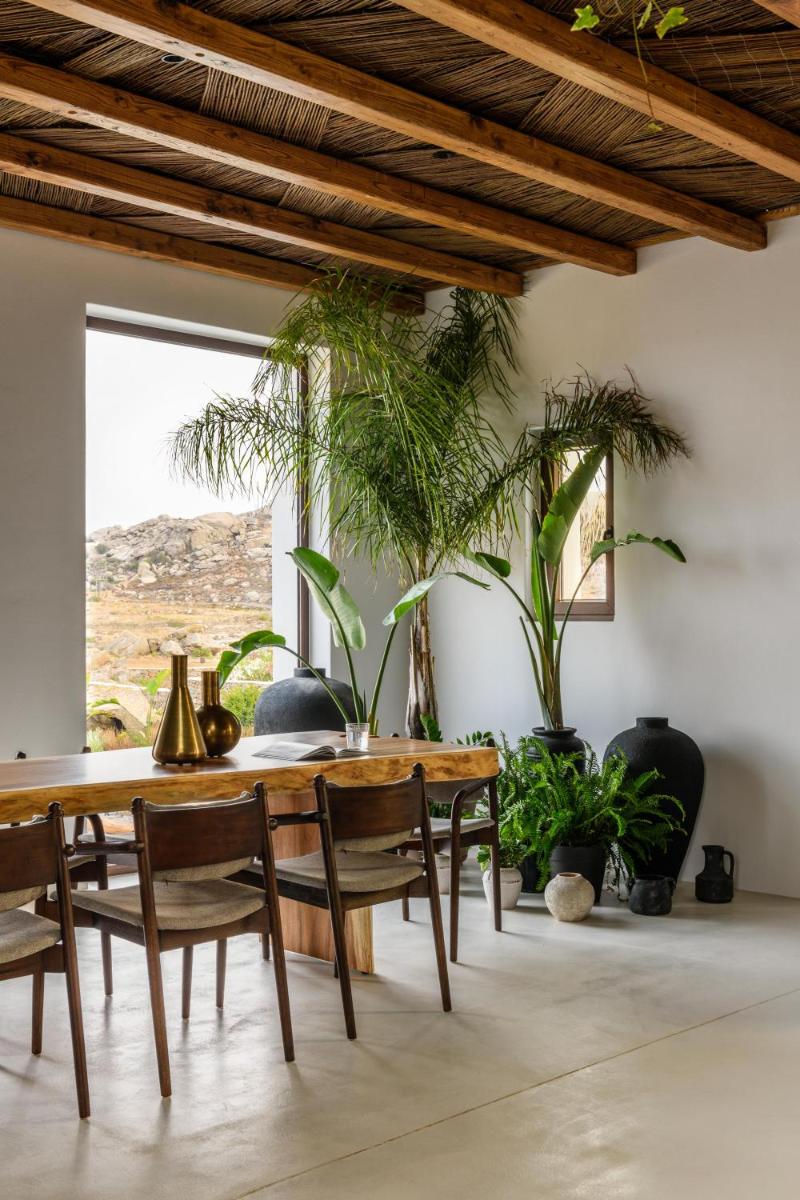 Los alojamientos están diseñados para ofrecer un refugio sereno y lujoso. Caracterizados por muebles de diseño, materiales naturales y una paleta de colores relajantes, muchas habitaciones y suites cuentan con un balcón o terraza privada con vistas panorámicas del Mar Egeo. La privacidad es un elemento clave, garantizando a los huéspedes un espacio personal para disfrutar de la tranquilidad ciclática.