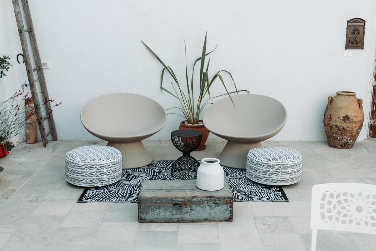 El diseño interior y exterior conserva la estructura original de la 'corte' salentina, caracterizada por piedra de Lecce y bóvedas de estrella, integrándola con muebles de diseño contemporáneo y acabados de lujo. Las habitaciones y suites son oasis de tranquilidad, que ofrecen un equilibrio perfecto entre tradición y modernidad, garantizando un confort exclusivo.