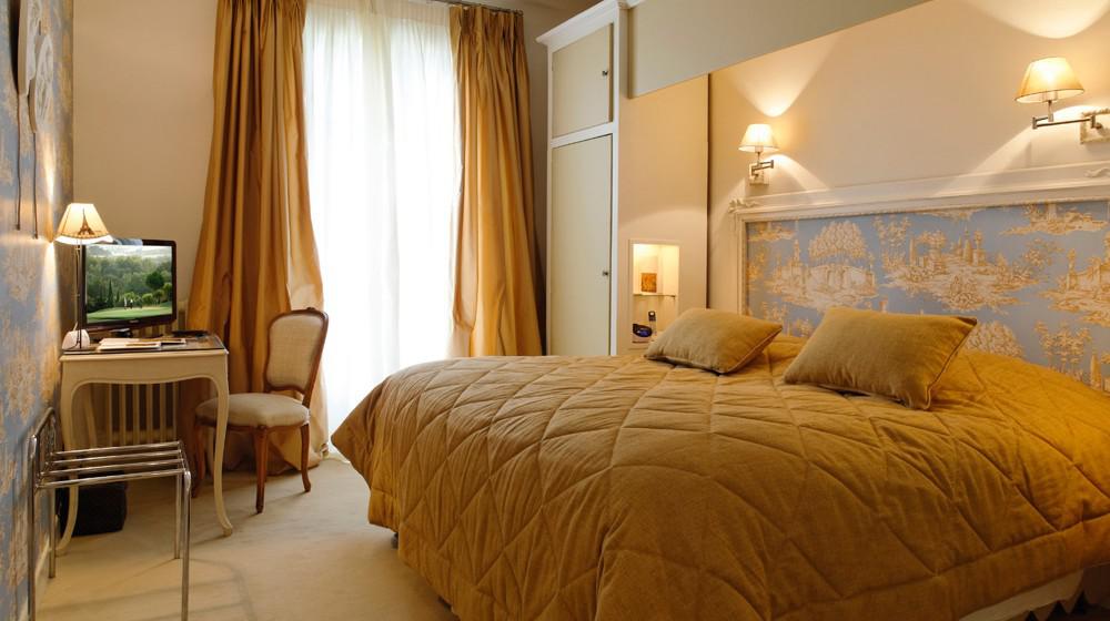 El hotel se encuentra en una antigua casa señorial que ha conservado todo su encanto. Es el único hotel de la zona con un campo de golf de 18 hoyos adyacente, lo que lo convierte en un paraíso para los golfistas. Las habitaciones y suites están decoradas con un estilo clásico y elegante, garantizando máximo confort y una vista relajante del parque o del campo de golf.