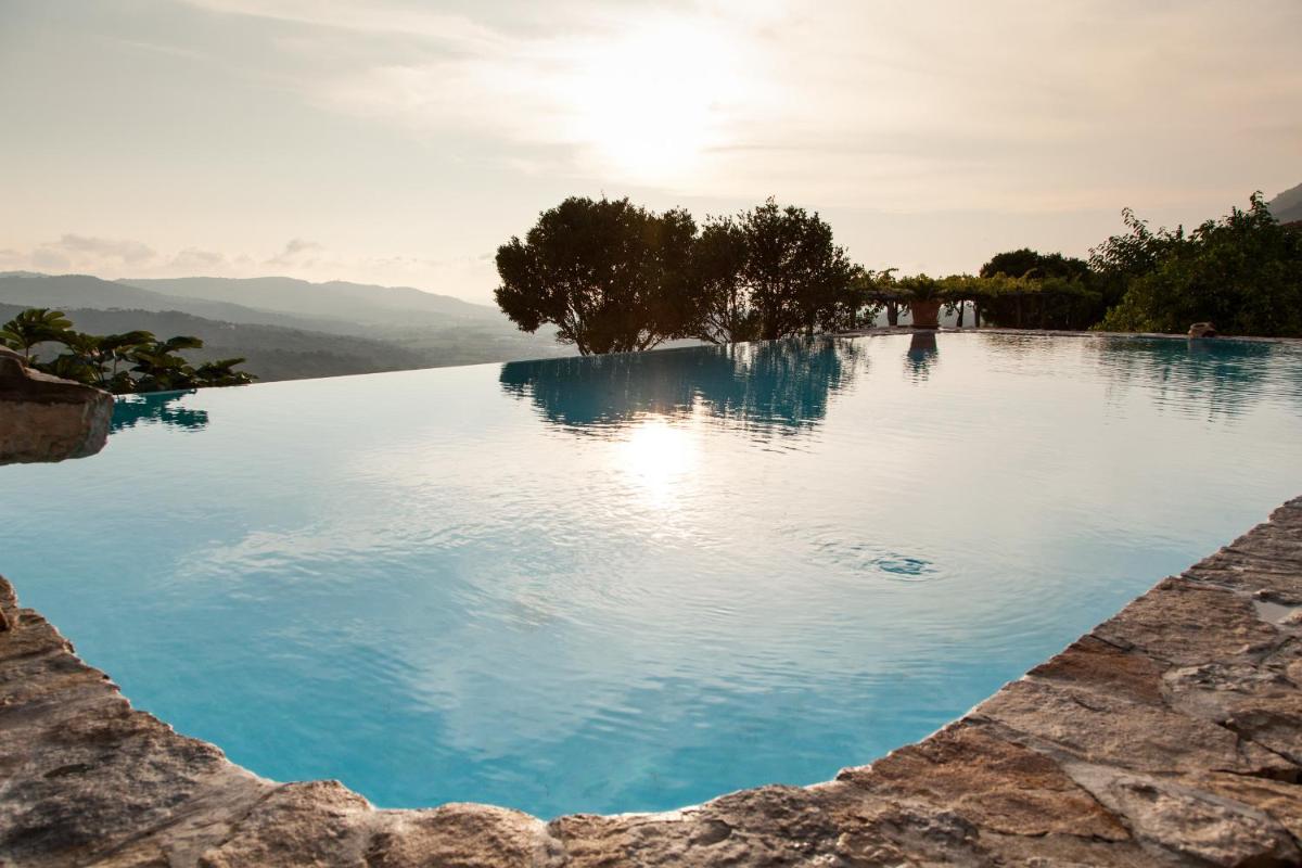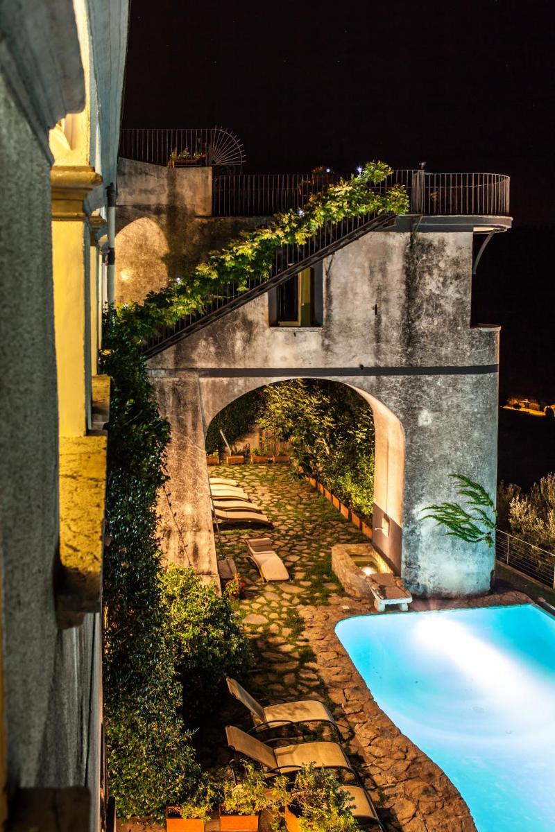 Los huéspedes pueden relajarse en la magnífica Piscina exterior con hidromasaje, convertida a partir de una antigua alberca de recogida de agua en el jardín panorámico. La propiedad cuenta con amplios espacios exteriores como una Logia con frescos, la terraza mirador, y un jardín con huerto. Los interiores ofrecen salones de representación y una valiosa Biblioteca con aproximadamente 2.000 volúmenes antiguos. Bajo petición, se organizan cenas de gala y Clases de Cocina tradicional. La ubicación es ideal para itinerarios turísticos hacia la costa de Cilento (Punta Licosa, Castellabate) y los sitios arqueológicos (Paestum, Velia).