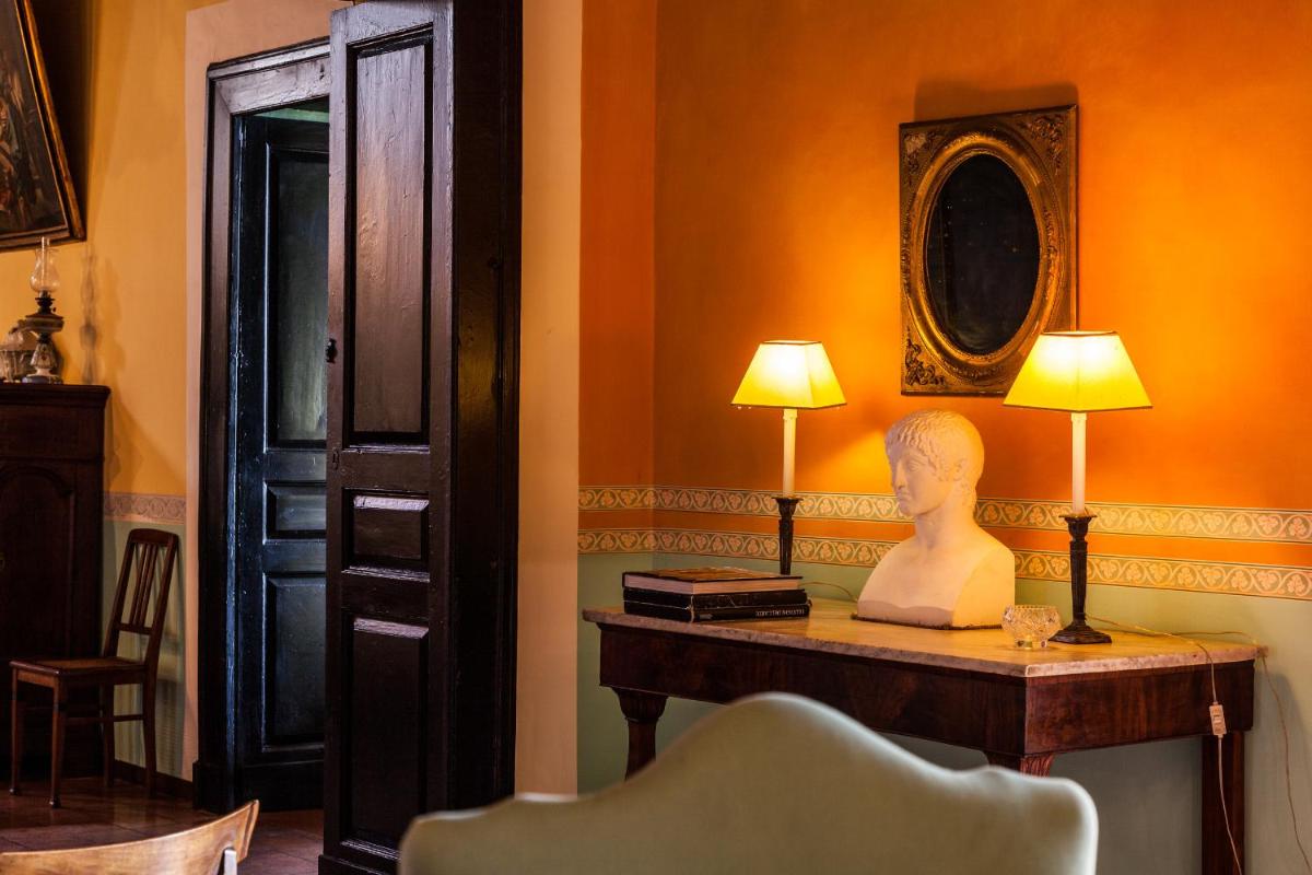La morada ofrece alrededor de 10 Habitaciones y Suites únicas (dobles y cuádruples, incluyendo apartamentos), amuebladas con refinados muebles de época y objetos que narran la larga historia de la familia. Todos los alojamientos cuentan con baño privado, aire acondicionado, Wi-Fi gratuito y TV, con vistas al romántico patio interior, al centro histórico o al espléndido valle y al mar.