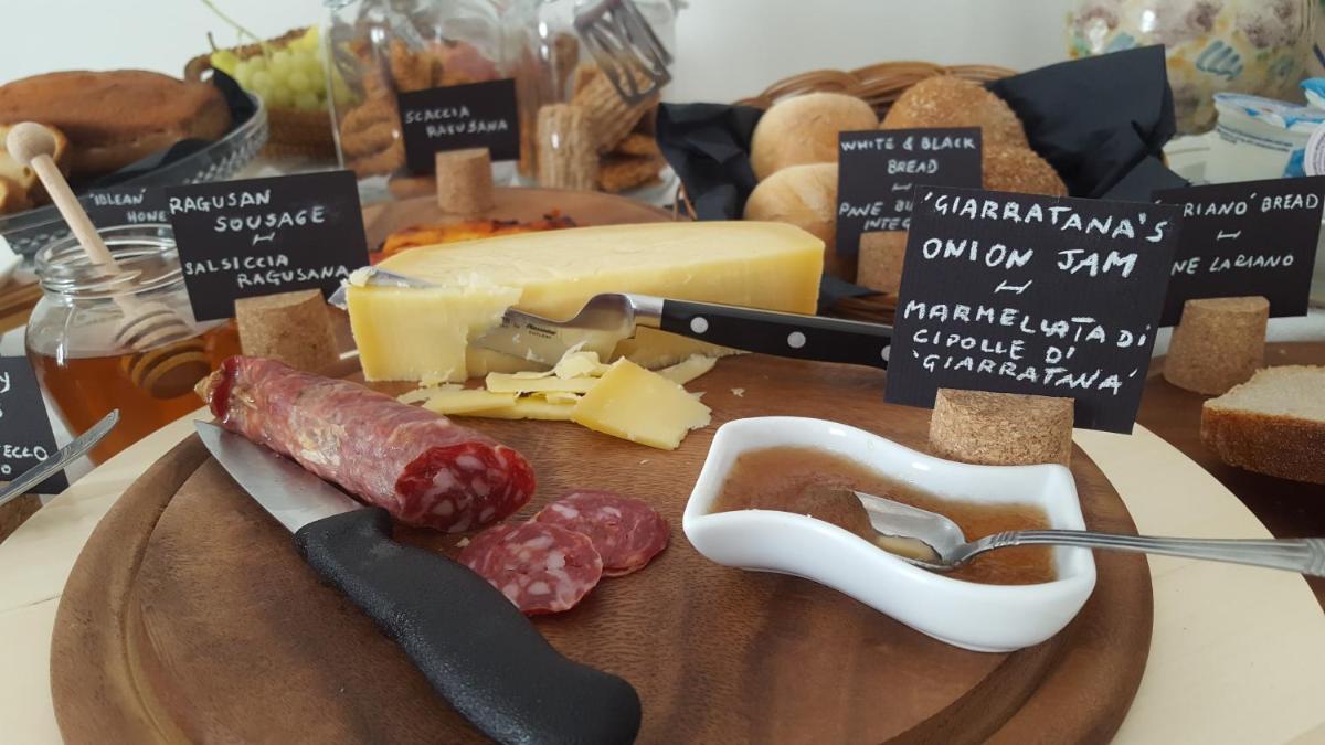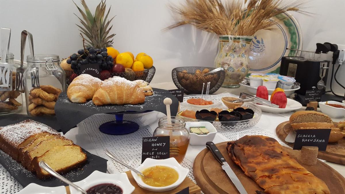 Buffet dulce/salado con ricotta fresca, pan casero, miel de los Ibleos, mermeladas artesanas y repostería siciliana. Recomendaciones seleccionadas para trattorias y osterias en las dos Ragusa.