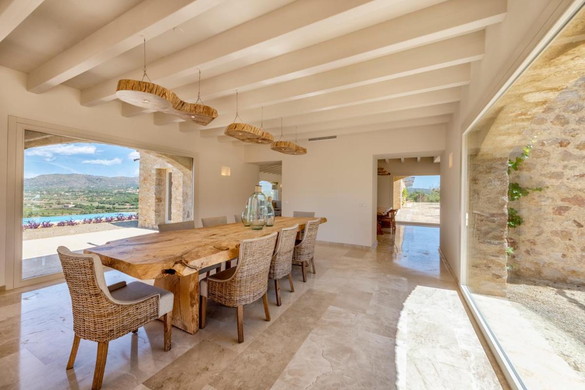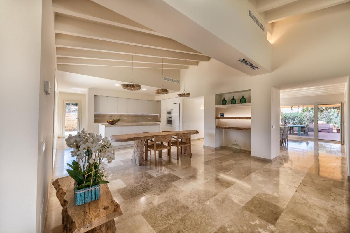 Die Architektur der Finca wurde beibehalten, aber die Innenräume wurden mit einem Design renoviert, das rustikale mallorquinische Elemente mit modernem Komfort und minimalistischem Stil kombiniert. Die Harmonie zwischen Alt und Neu garantiert einen anspruchsvollen Aufenthalt.