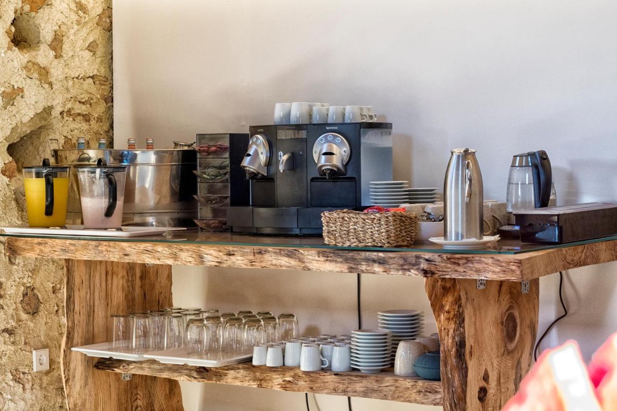 Das Herzstück des Anwesens ist der große Außenpool, umgeben von großzügigen Liegeflächen. Gäste können sich entspannen oder an Aktivitäten wie Yogastunden teilnehmen. Die Umgebung ist ideal für Wanderungen und Radtouren.