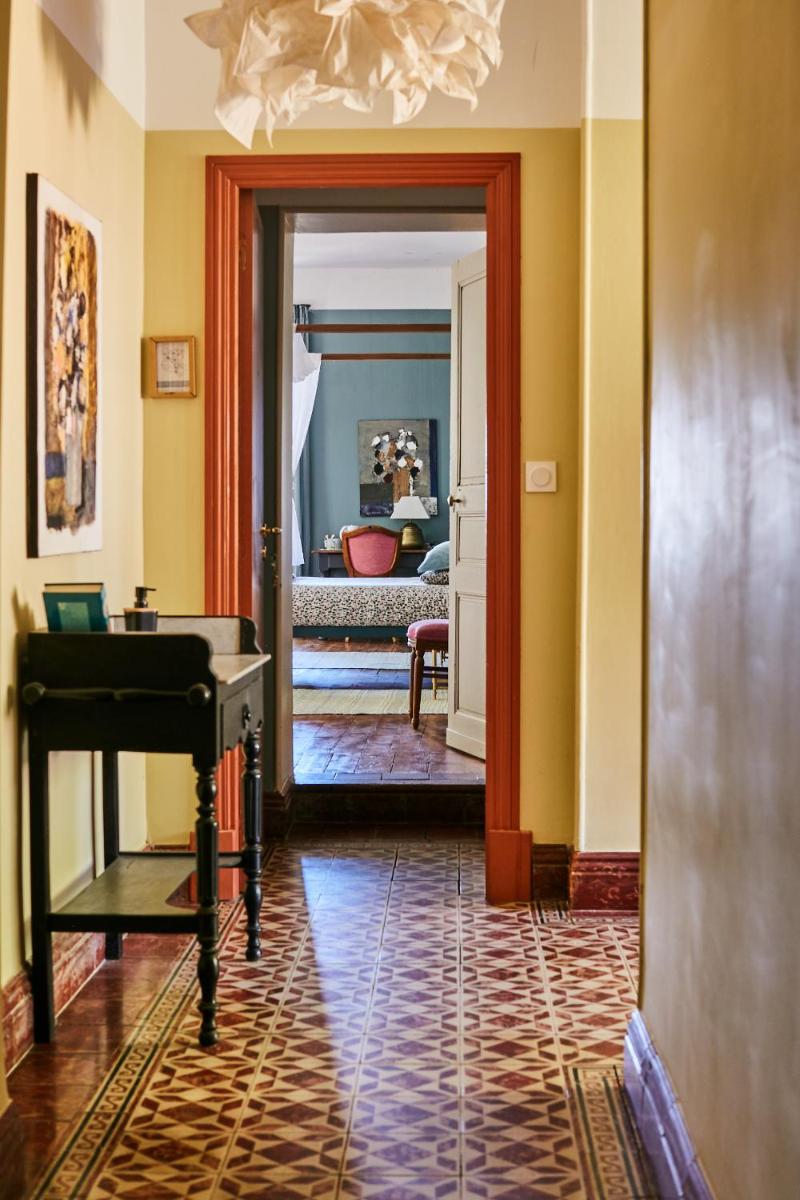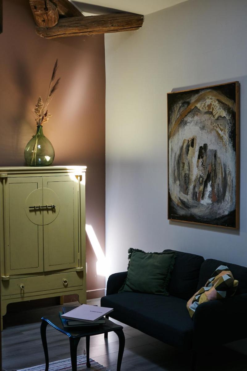 La estructura es un ejemplo impecable de restauración, donde las piedras antiguas, las vigas a la vista y los techos abovedados se fusionan con un diseño interior fresco y contemporáneo. La decoración es sobria y elegante, con un uso hábil de telas naturales y colores que recuerdan la paleta provenzal. Cada habitación es un rincón de serenidad, con una vista impresionante del paisaje circundante.