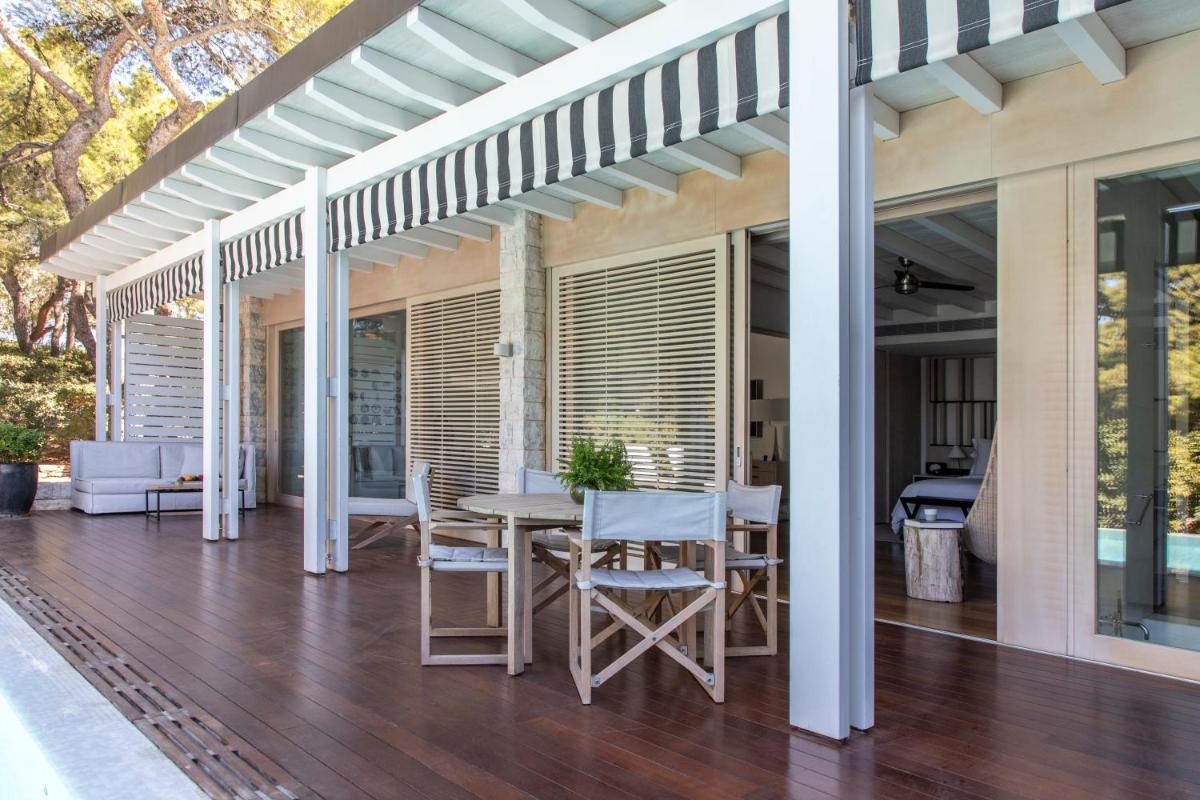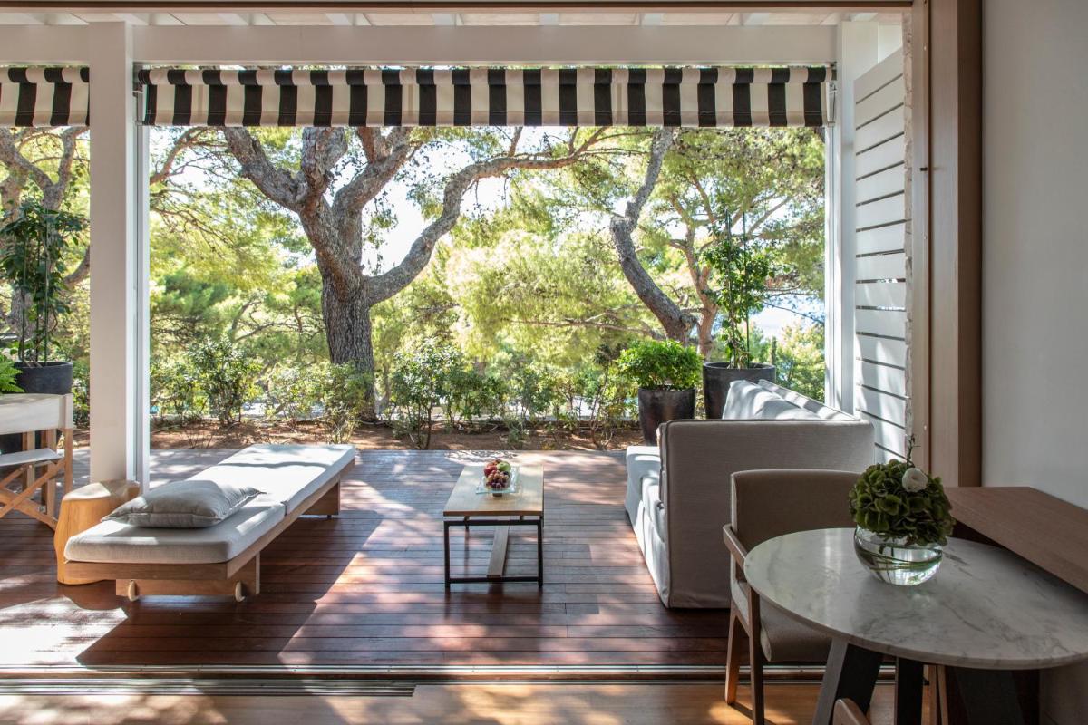 A pesar de su posición apartada y tranquila en la Riviera, el hotel está estratégicamente cerca del centro histórico de Atenas (a unos 30 minutos en coche). Este equilibrio permite a los huéspedes combinar fácilmente la exploración de los sitios arqueológicos con un oasis de relajación de lujo frente al mar.