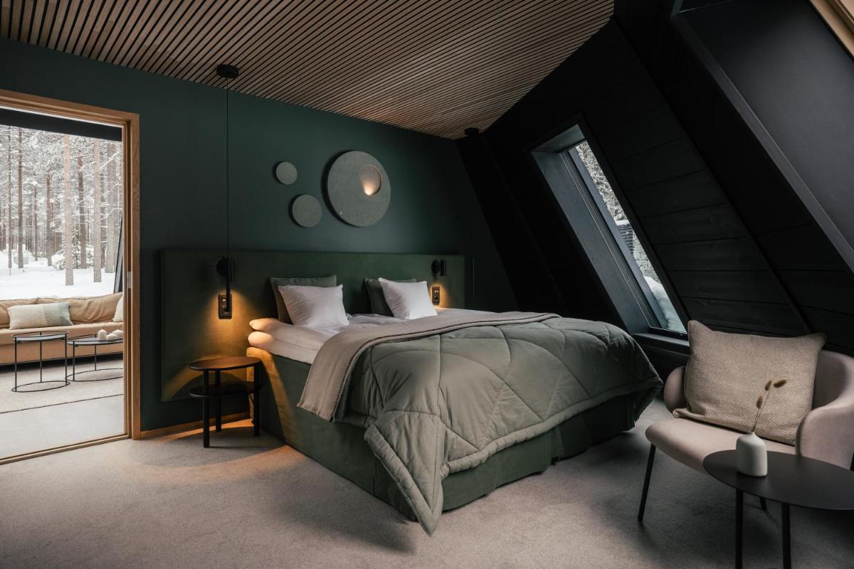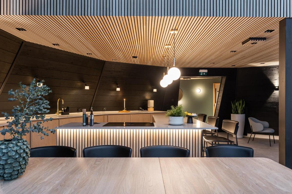Cada apartamento está diseñado según los principios del diseño nórdico, con líneas limpias, materiales naturales y acabados de alta calidad. Los ventanales panorámicos cubren el techo y parte de las paredes, creando una atmósfera luminosa de día y totalmente inmersiva de noche. Muchos alojamientos incluyen una sauna privada o una mini-cocina, garantizando una estancia autónoma y de máxima relajación.