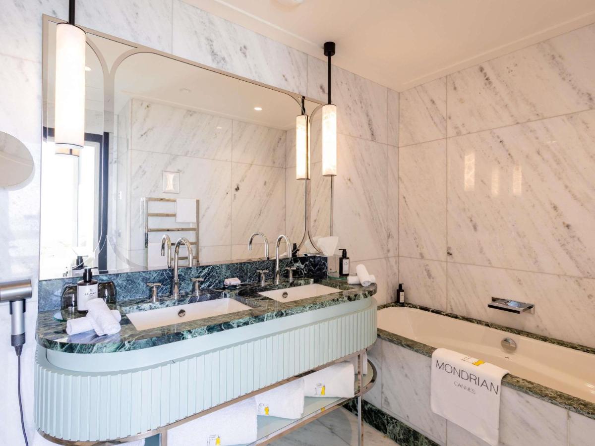 Las áreas comunes y las habitaciones reflejan la estética distintiva de la marca Mondrian, caracterizada por un diseño audaz, instalaciones artísticas y una atmósfera energética. Cada espacio está curado para estimular los sentidos, transformando el hotel en una galería de arte habitable que se combina perfectamente con el entorno glamuroso de Cannes.