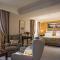 This spacious junior suite of 45m2 has city view. It has air conditioning, soundproof walls and a bathroom with bathtub and separate WC. Acqua di Parma bath products. It provides a desk, a television, a minibar and Nespresso machine. The room is suitable for up to 3 people. The bed is super king size. Twin beds are possible.