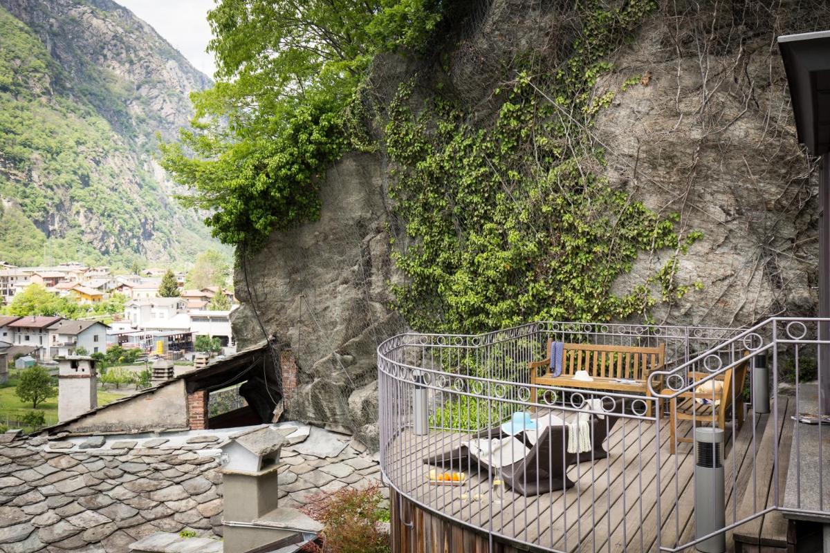 El hotel dispone de 18 habitaciones, todas diferentes y personalizadas con elementos de época restaurados y obras pictóricas del artista valdostano Franco Balan. Los alojamientos – incluyendo Classic, Confort, Superior y Deluxe – destacan por su elegante mobiliario y vistas panorámicas a las montañas, al pueblo o al Forte. La lujosa Suite Relax de 35 m² está distribuida en dos niveles (zona de estar y zona de dormir) e incluye un Jacuzzi (bañera de hidromasaje) para la máxima relajación privada.