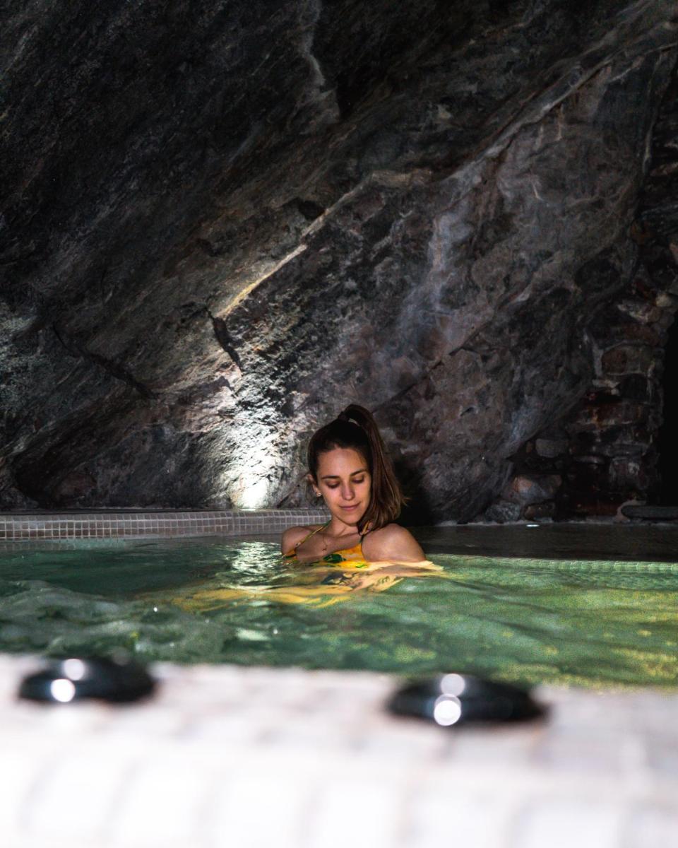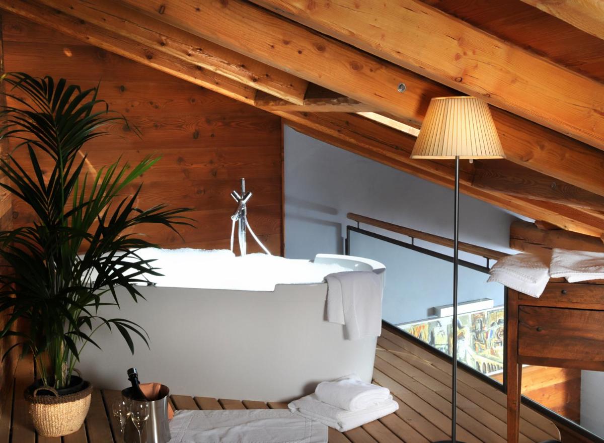 La pieza central es la zona de bienestar Ad Aquas, un Spa refinado y mágico excavado directamente en la roca en un antiguo edificio a la entrada del pueblo. El ambiente, extremadamente sugerente y primitivo, ofrece un circuito de bienestar completo: una bañera de hidromasaje con cascada, sauna, baño turco, duchas emocionales y una acogedora zona de relajación con tisanería. El acceso al Spa es gratuito para los huéspedes que reservan directamente. Masajes y tratamientos también están disponibles bajo petición.