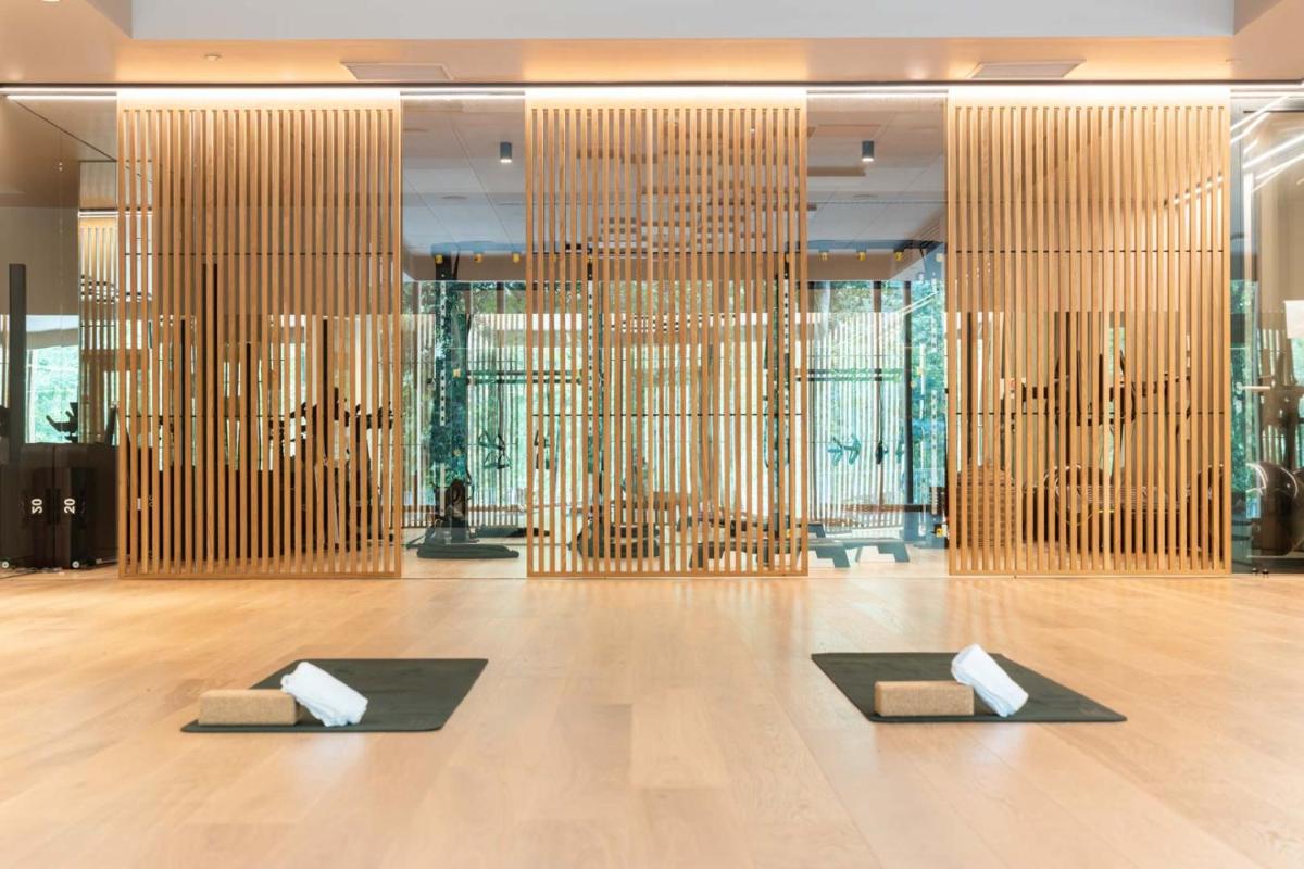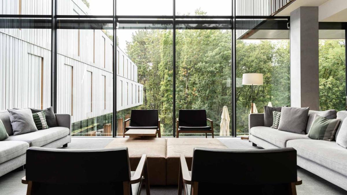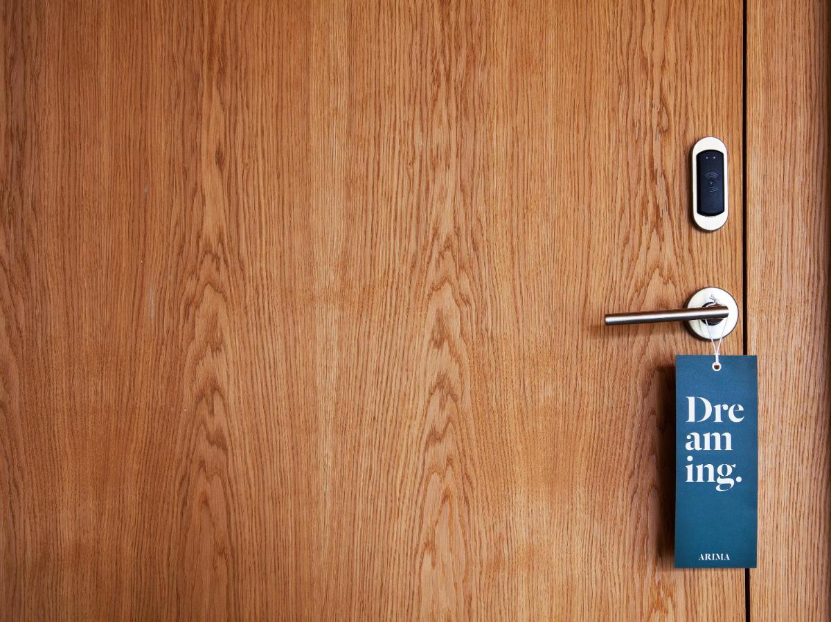 Arima es uno de los pocos hoteles en España con la certificación Passivhaus, que garantiza un consumo energético casi nulo. El diseño está inspirado en el estilo nórdico, con interiores luminosos, amplios espacios abiertos, uso masivo de madera clara y vidrio, y una perfecta integración visual con el parque circundante.