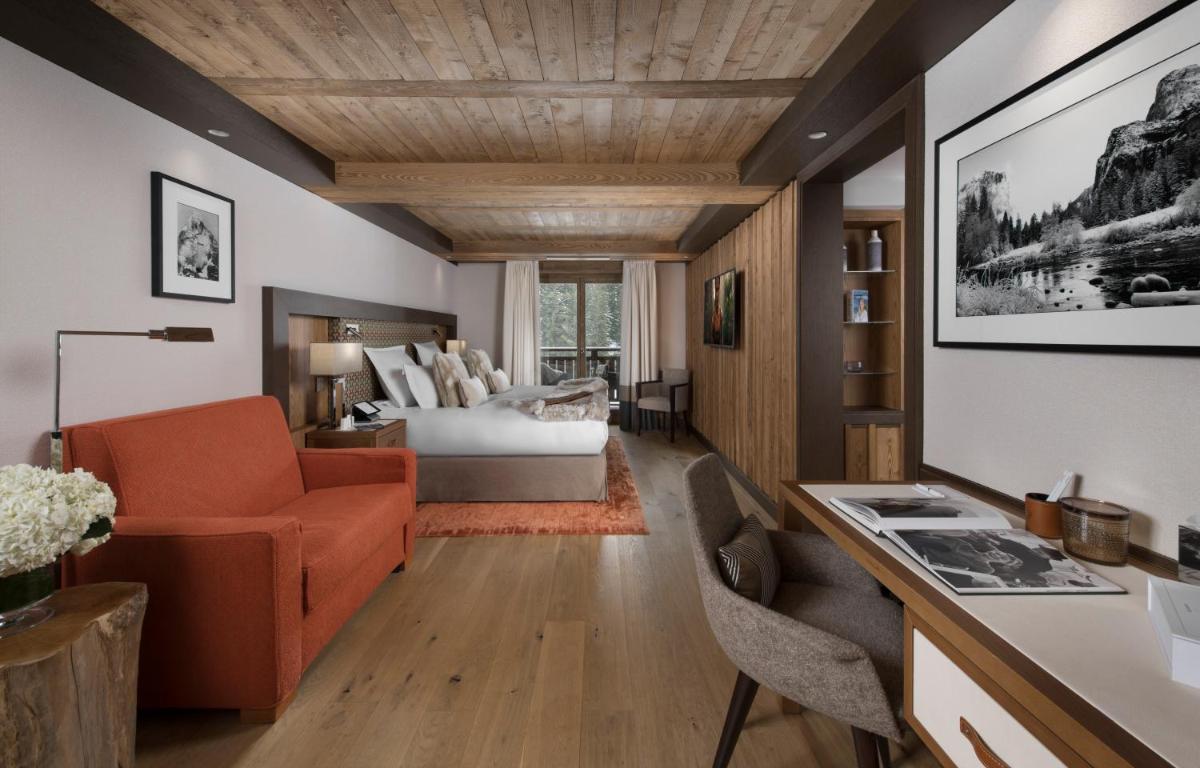Las 29 habitaciones, suites y el excepcional ático están decorados con un estilo alpino chic y contemporáneo, con un uso dominante de madera, piedra y telas finas. Los espacios son generosos, y muchos ofrecen un balcón con vistas a las montañas y pistas, asegurando un confort de lujo absoluto después de un día en la nieve.
