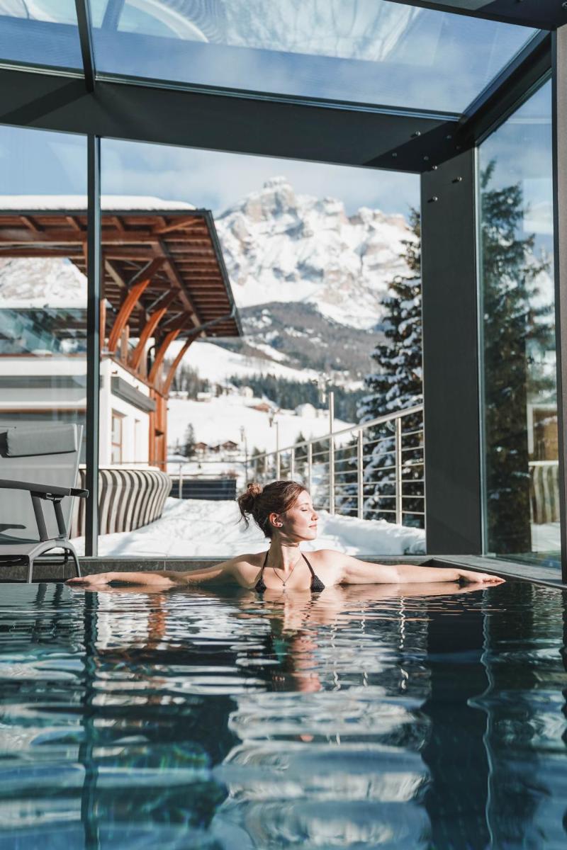 Hotel Ciasa Soleil es un hotel cuatro estrellas superior en el corazón de La Villa junto a la pista Gran Risa. Destaca por su diseño moderno hospitalidad familiar y vistas impresionantes de los Dolomitas.