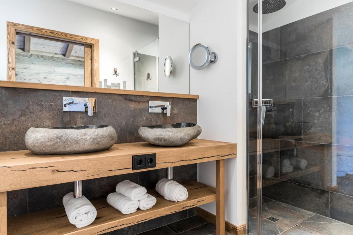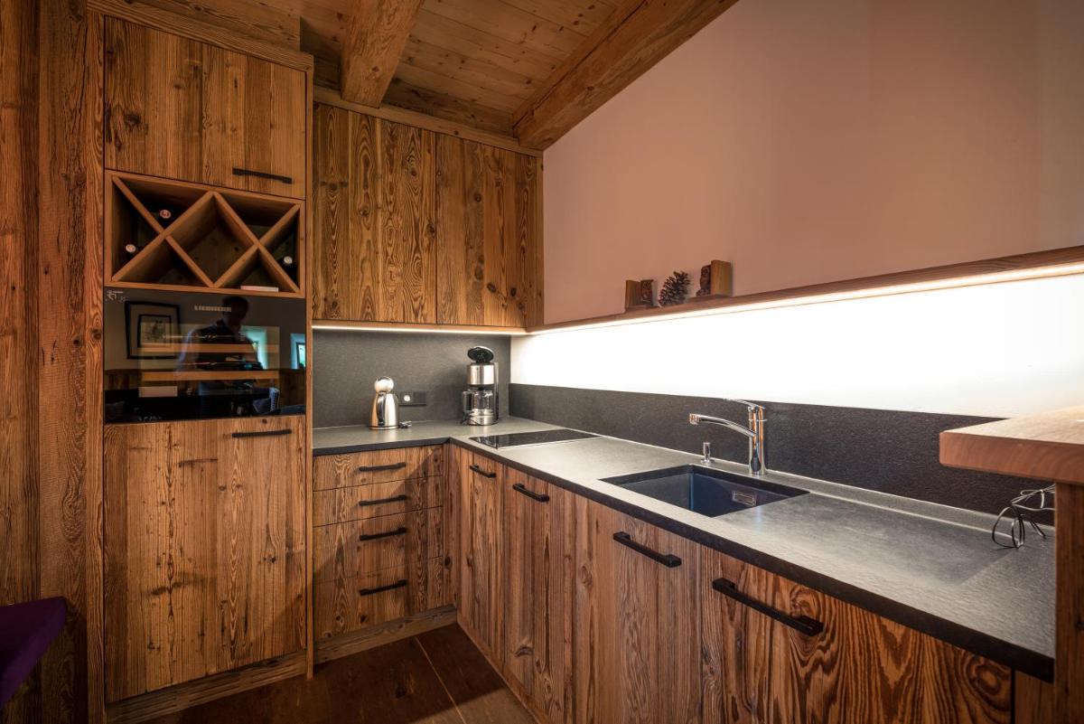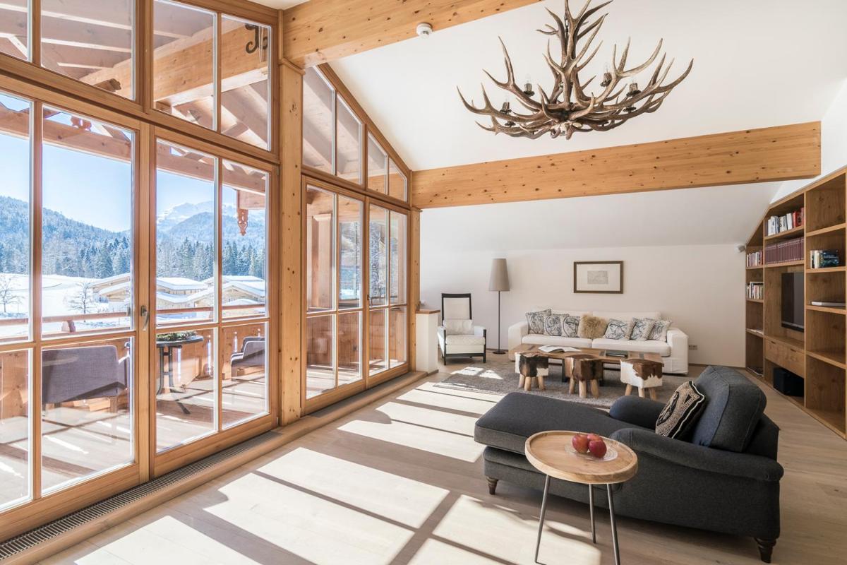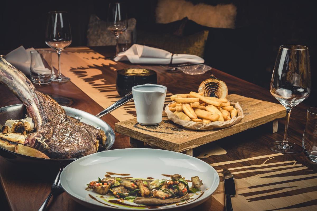 Los lujosos chalets están construidos con materiales locales, como madera antigua y piedra, y amueblados en un estilo que fusiona la elegancia rústica con el diseño moderno. Cada chalet ofrece su propia estufa de leña, sauna privada y terraza panorámica, creando un sentido de hogar lejos del hogar con una atención meticulosa al confort exclusivo y al detalle.