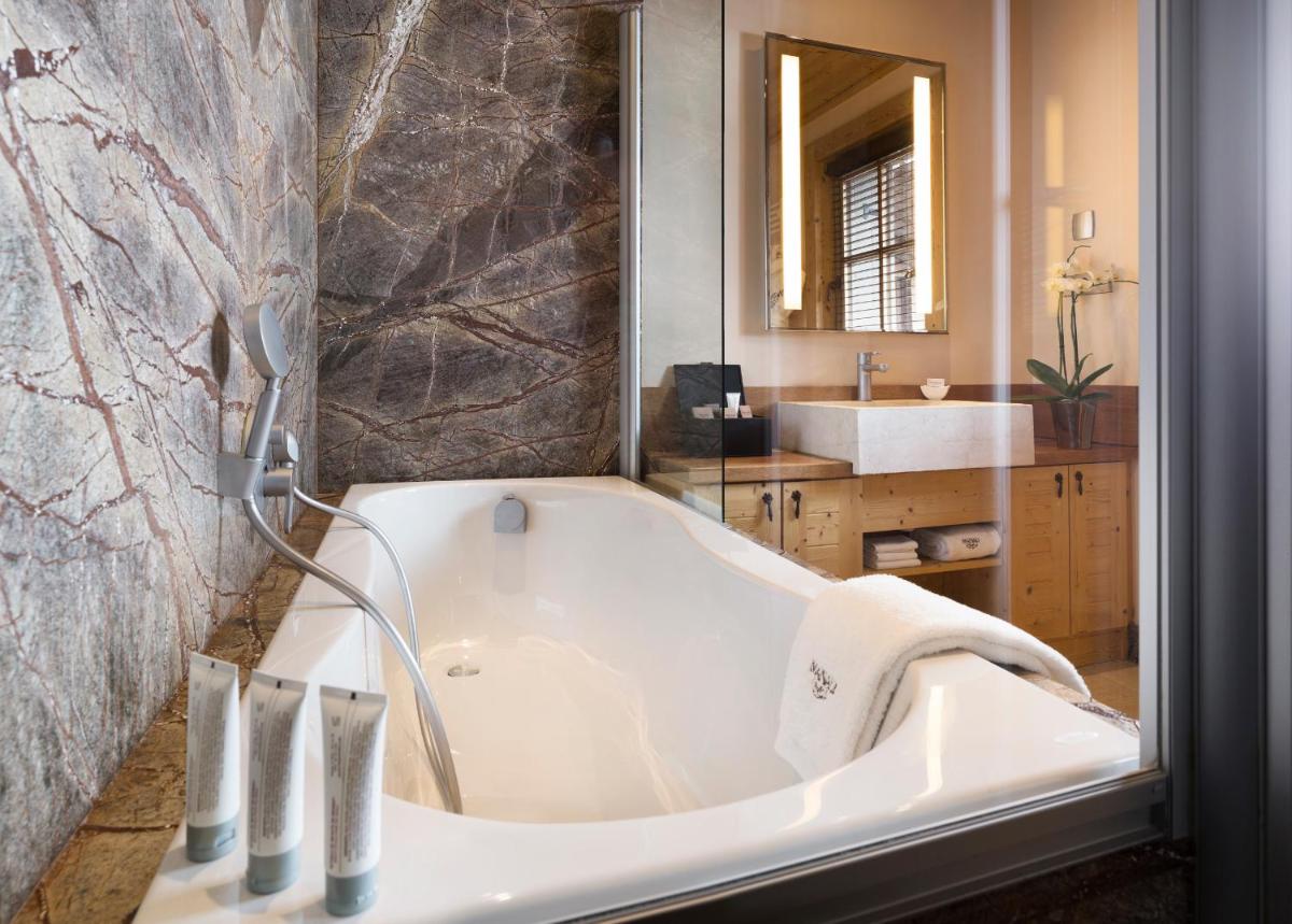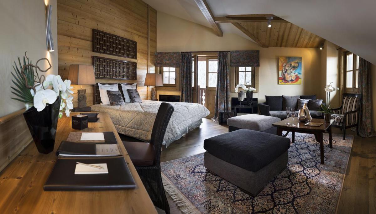 Los interiores juegan con el contraste entre la robusta madera alpina y los colores vibrantes, los tejidos bordados y las piezas de arte inspiradas en el Norte de la India, en particular en la región de Manali. Las habitaciones y suites son verdaderos refugios de confort, ofreciendo un lujo discreto y envolvente.