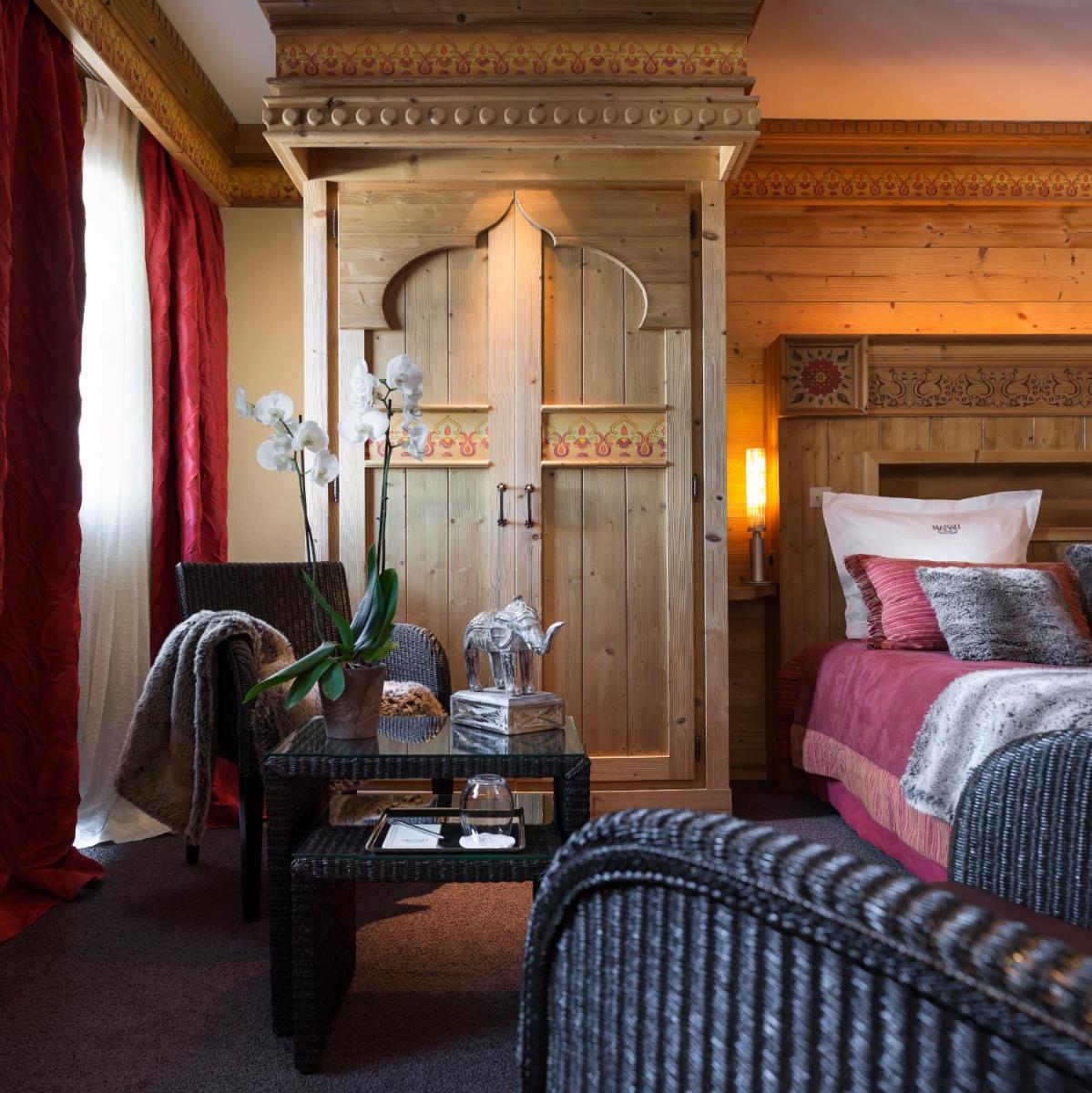 El Hotel Manali en Courchevel 1650 (Moriond) ofrece una experiencia de lujo única, combinando la arquitectura alpina tradicional con detalles de mobiliario que evocan las atmósferas exóticas de la India. Esta fusión crea un ambiente cálido, acogedor y distintivo, con una excelente ubicación ski-in/ski-out.