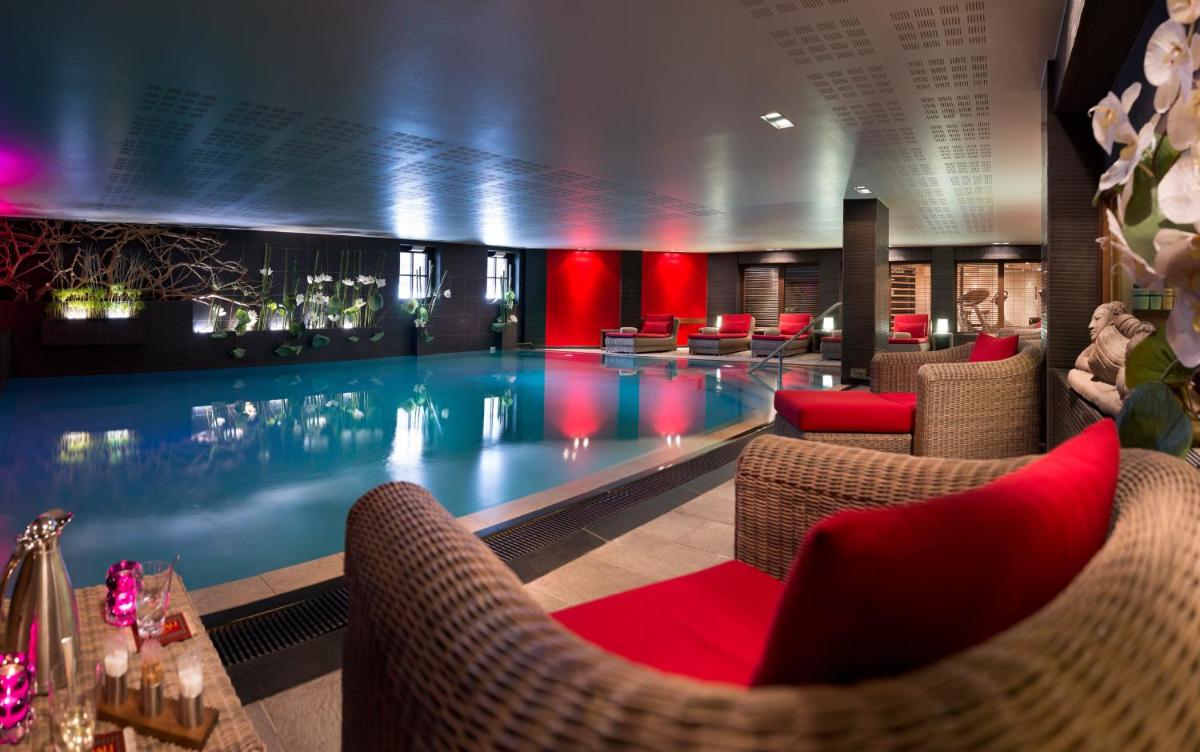 El hotel cuenta con un restaurante que ofrece cocina de alta calidad, con un enfoque en la gastronomía francesa y saboyana, preparada con ingredientes frescos y de temporada. El ambiente es elegante pero informal, perfecto para cenas familiares o momentos conviviales después de un día de esquí.