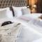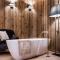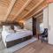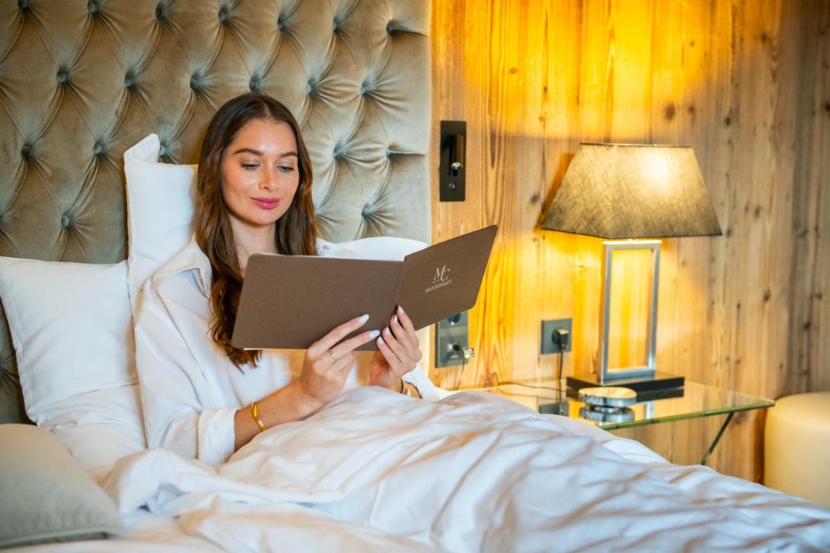 El Montchalet dispone de tan solo 16 suites exclusivas, cada una diseñada para el máximo confort y bienestar psicofísico. Todos los alojamientos están amueblados con muebles de lujo, suelos radiantes y equipados con comodidades de alta gama como Smart TV, Wi-Fi gratuito y minibar/bodega de vinos. Las suites ofrecen amplios espacios y detalles lujosos; algunas categorías, como las Suites Platin, incluyen bañeras de hidromasaje o baños de vapor privados, asegurando un retiro de relajación total.