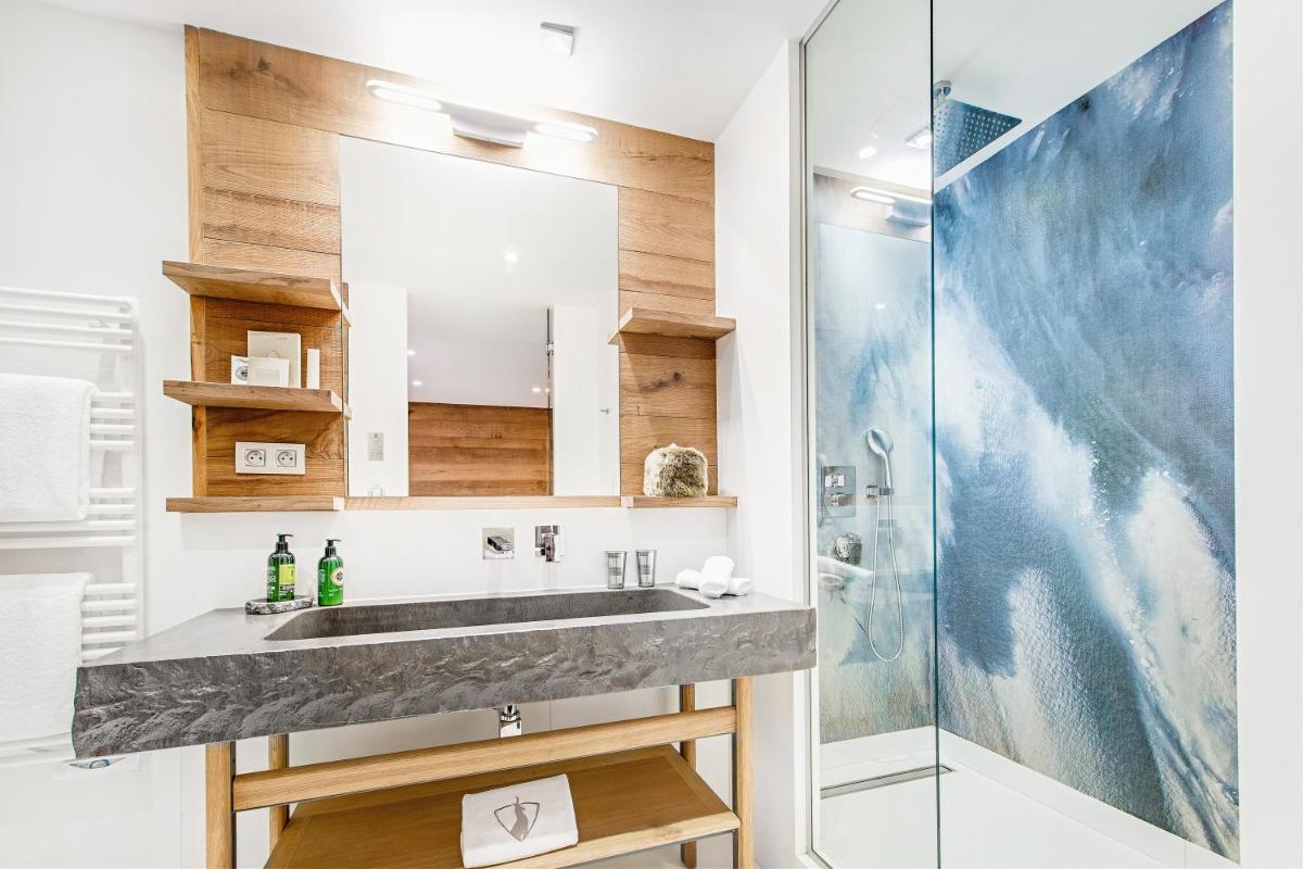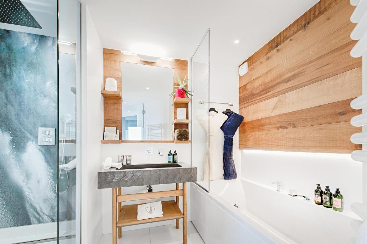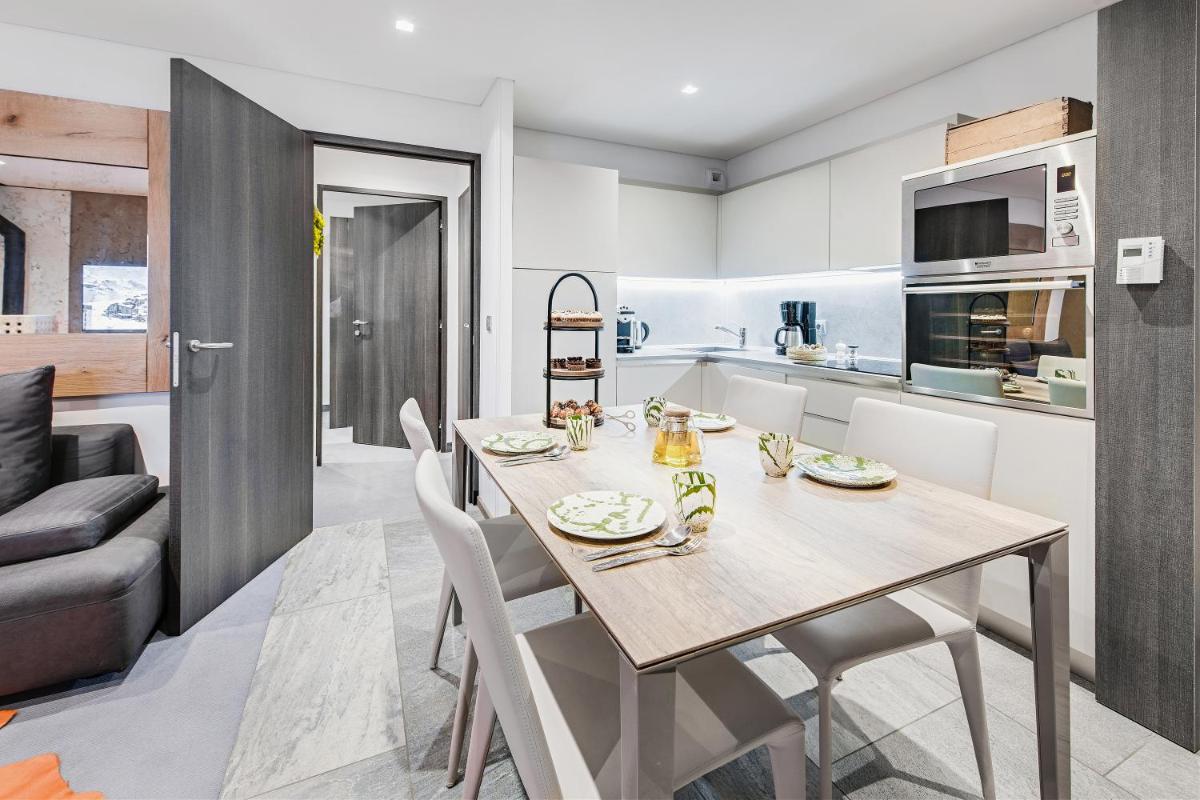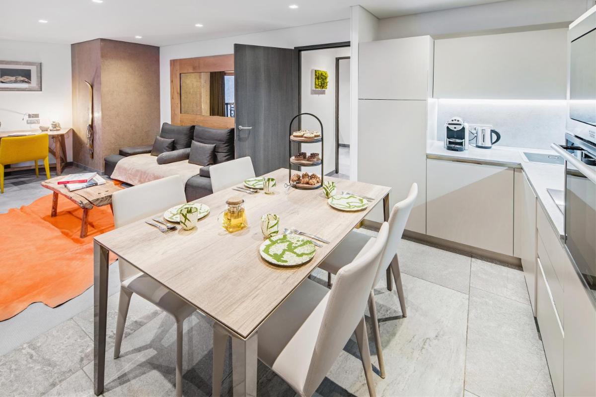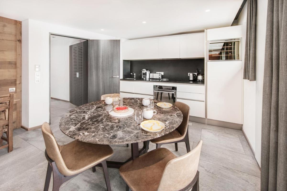 El hotel cuenta con varias opciones gastronómicas, incluyendo el restaurante gourmet y el restaurante 'Base Camp', enfocado en la cocina alpina y gourmand para compartir, en una atmósfera de verdadero refugio. El bar, elegante y acogedor, es el lugar ideal para un cóctel o un té, a menudo acompañado de música en vivo por la noche, creando un ambiente convivencial y sofisticado cerca de la chimenea.