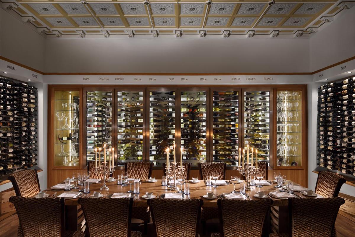 La oferta gastronómica está liderada por el reconocido restaurante que propone alta cocina mediterránea y local en un ambiente suntuoso. La terraza exterior, con su vista al lago, es ideal para cenas románticas. El hotel también es famoso por sus áreas comunes, incluyendo el bar y el vestíbulo, caracterizados por frescos y decoraciones originales del siglo XIX, que subrayan su prestigio.