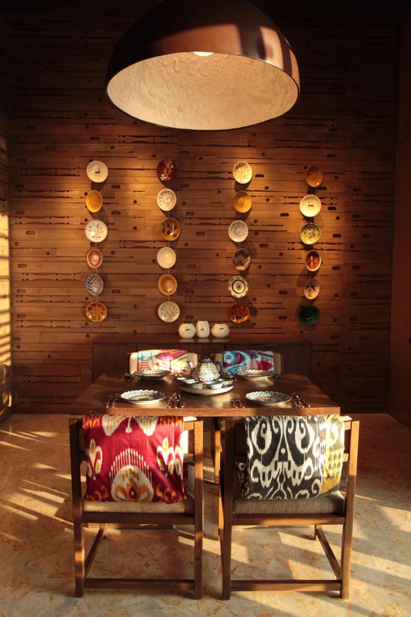 El hotel cuenta con varias opciones gastronómicas que van desde la cocina asiática y de Oriente Medio hasta sabores internacionales, ofreciendo una experiencia culinaria diversa y de alta calidad. El bar panorámico es un lugar privilegiado para disfrutar de cócteles con vistas impresionantes del skyline de Taskent, especialmente al atardecer.