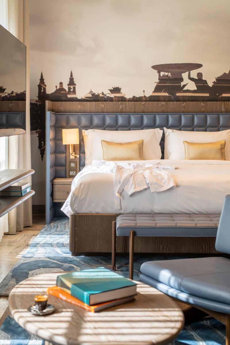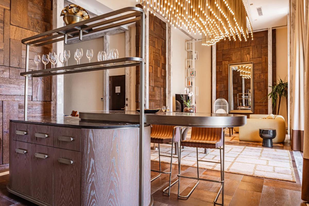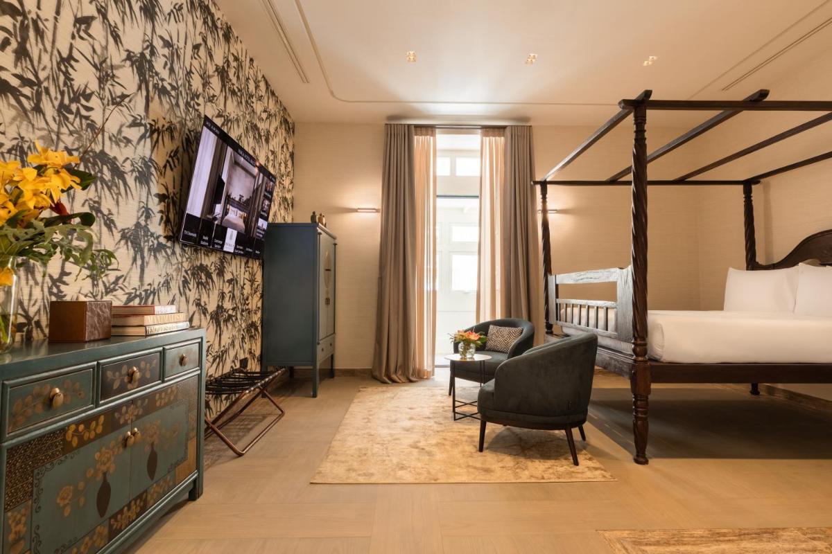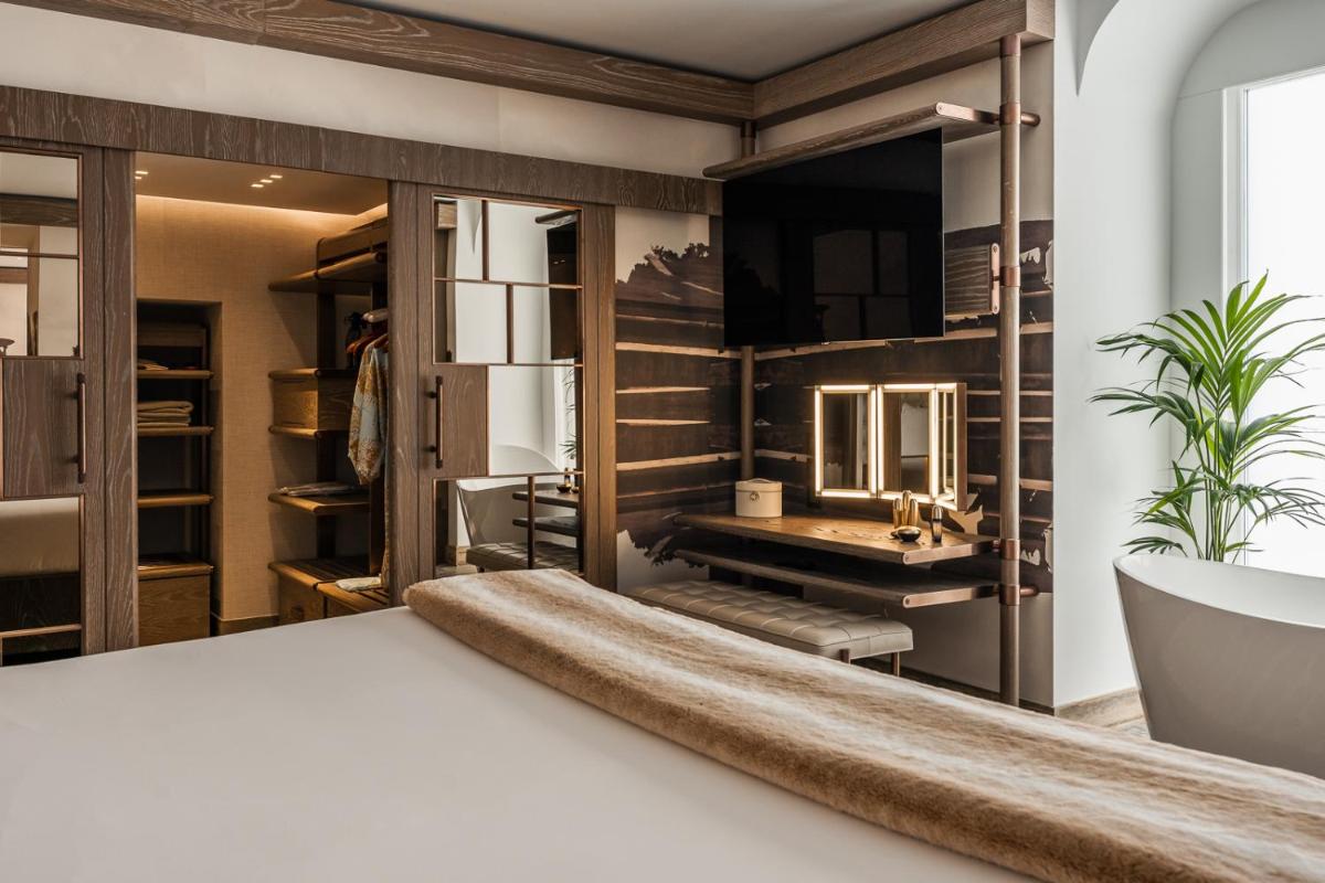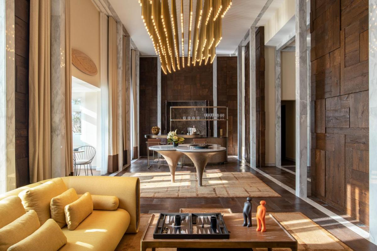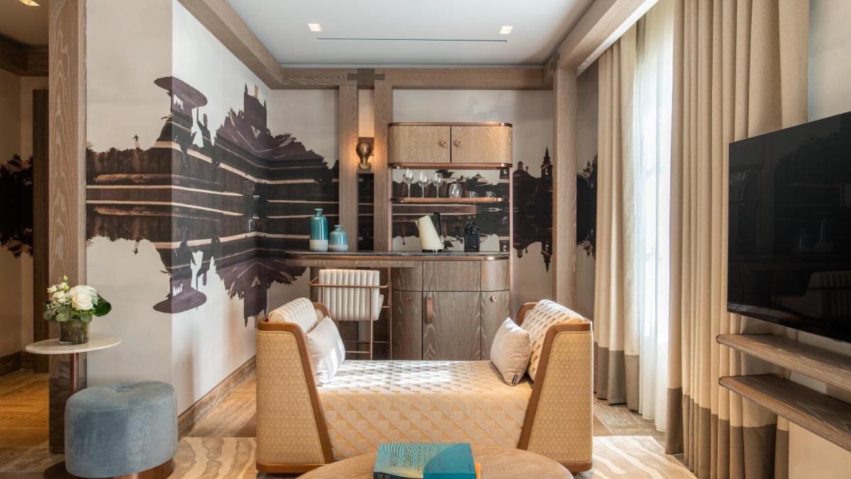Los interiores han sido diseñados por estudios de arquitectura y diseño de renombre internacional, con un estilo que mezcla elegancia clásica y vanguardia moderna. Cada suite y habitación es única, caracterizada por acabados de lujo, mobiliario de diseño y una particular atención al arte contemporáneo, que se integra perfectamente con la historia del edificio.