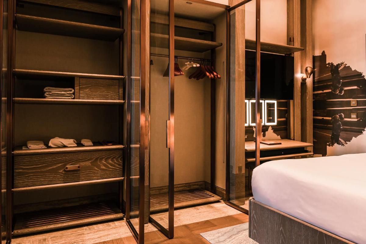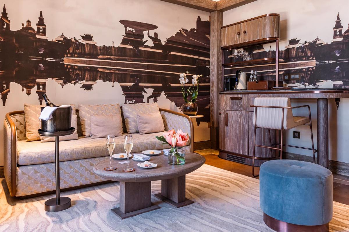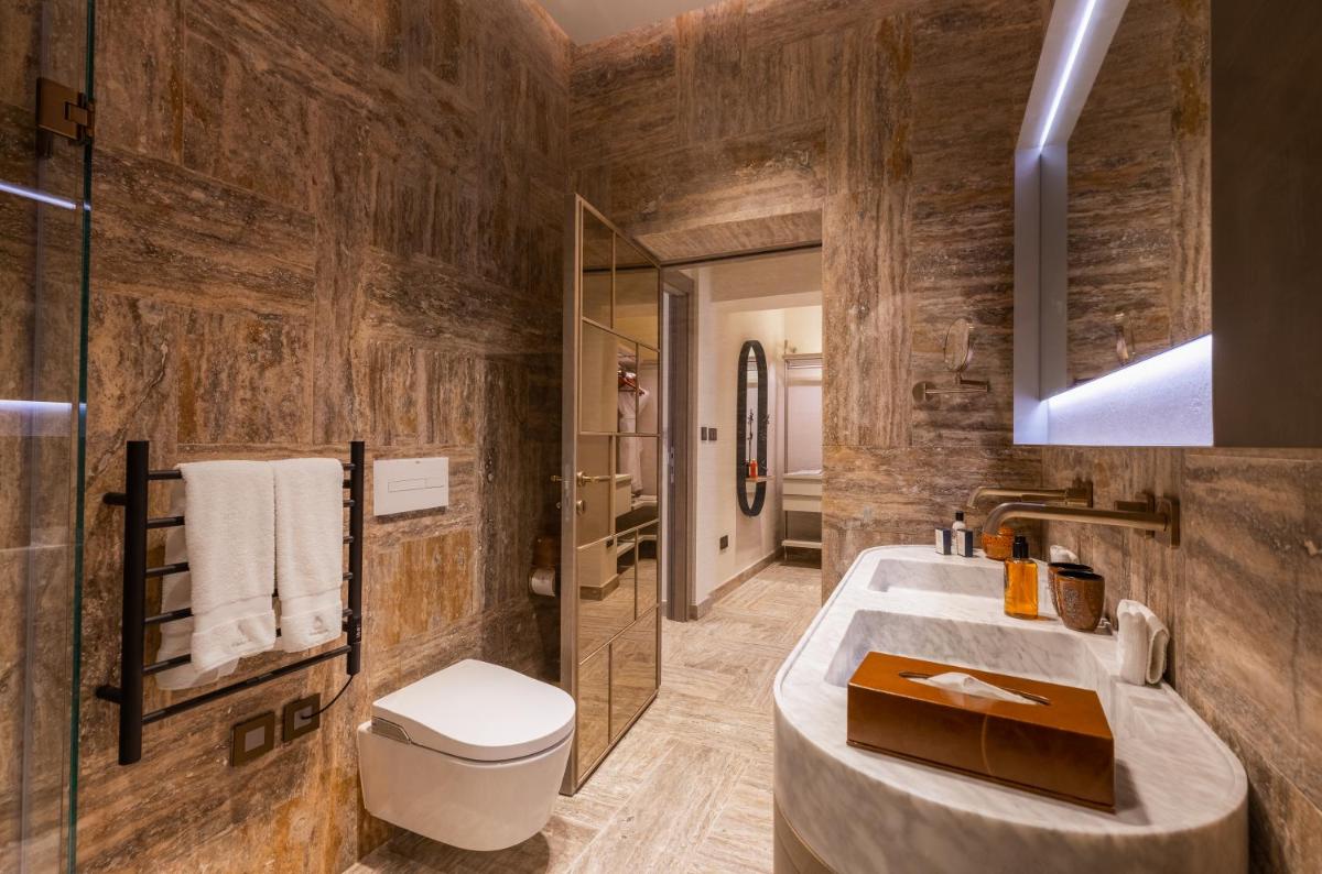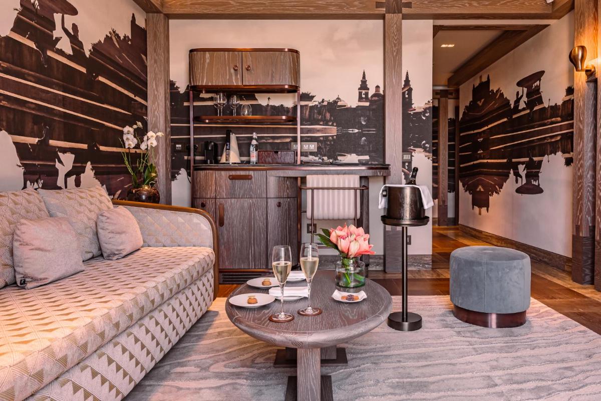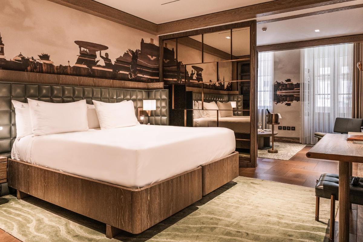 Los interiores han sido diseñados por estudios de arquitectura y diseño de renombre internacional, con un estilo que mezcla elegancia clásica y vanguardia moderna. Cada suite y habitación es única, caracterizada por acabados de lujo, mobiliario de diseño y una particular atención al arte contemporáneo, que se integra perfectamente con la historia del edificio.