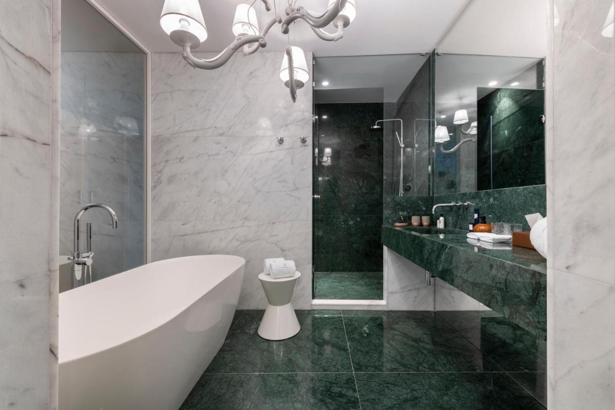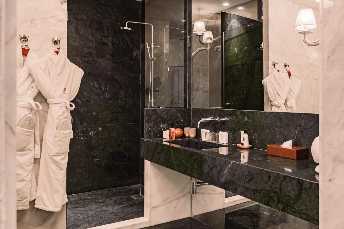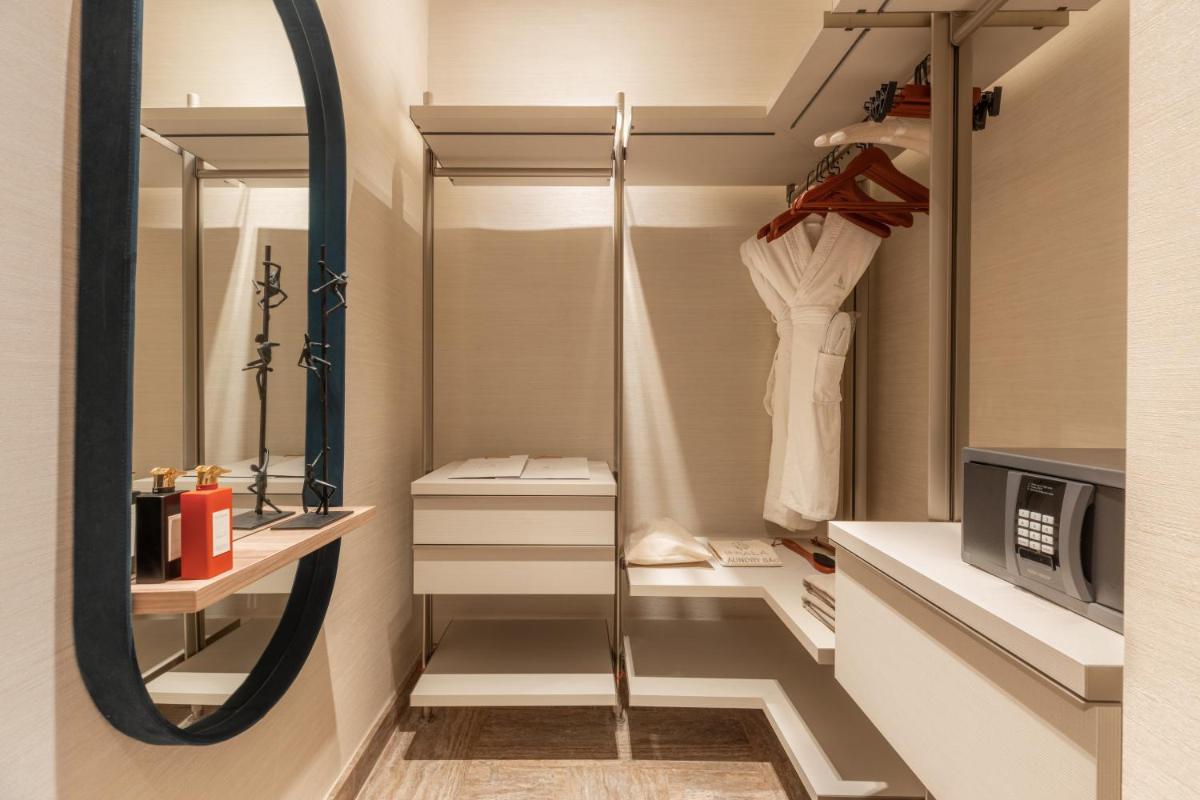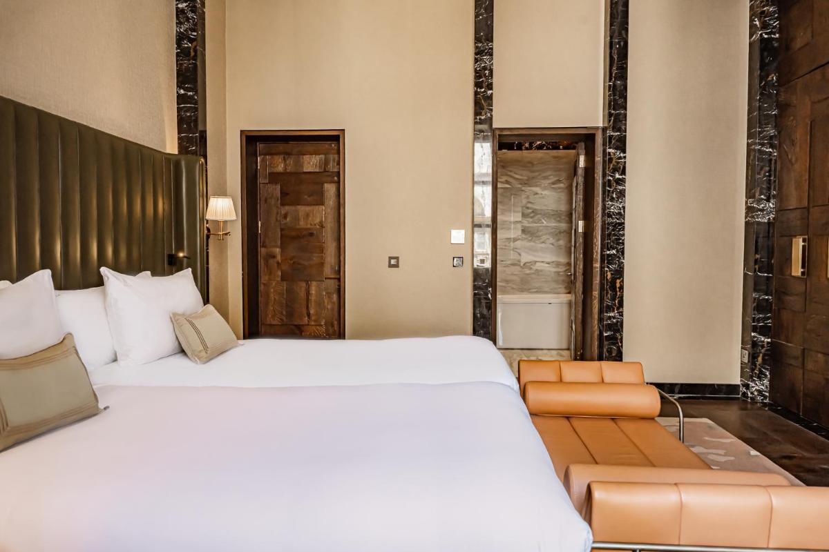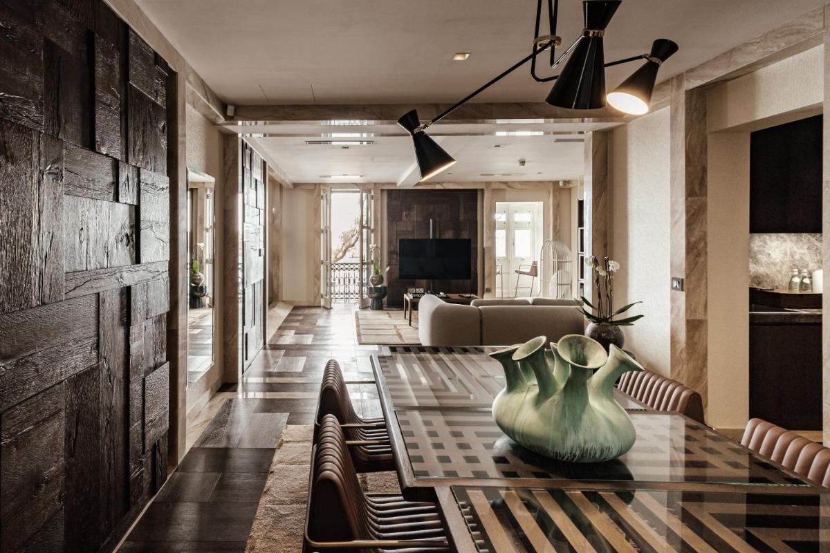 Los interiores han sido diseñados por estudios de arquitectura y diseño de renombre internacional, con un estilo que mezcla elegancia clásica y vanguardia moderna. Cada suite y habitación es única, caracterizada por acabados de lujo, mobiliario de diseño y una particular atención al arte contemporáneo, que se integra perfectamente con la historia del edificio.